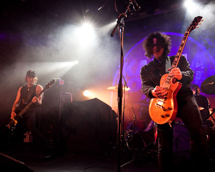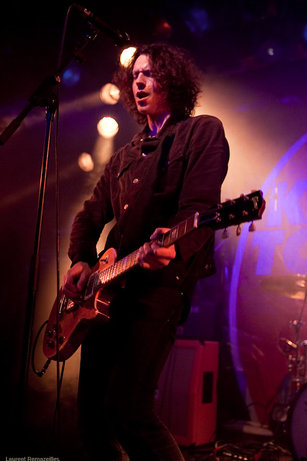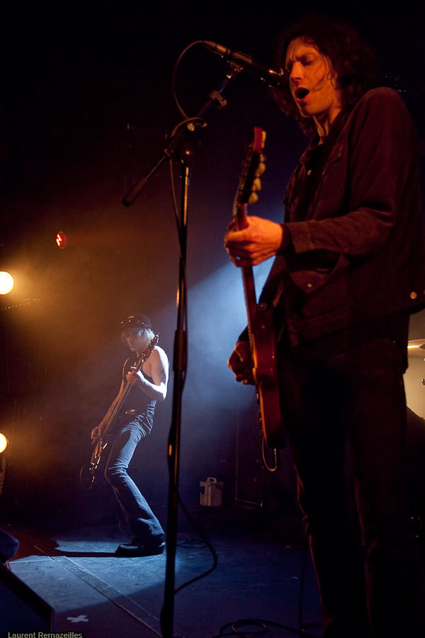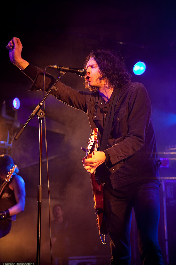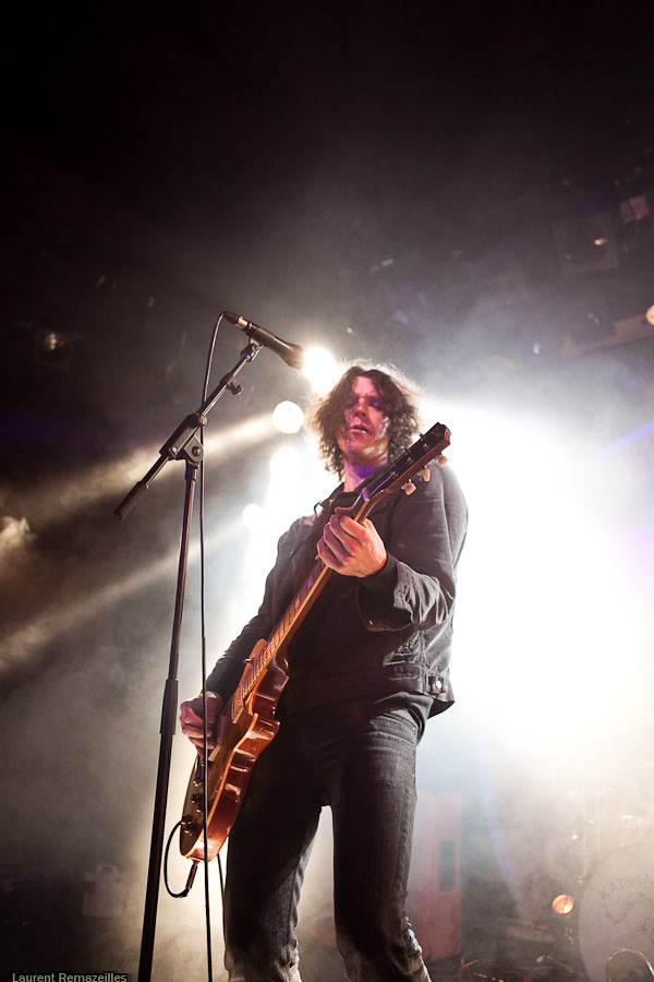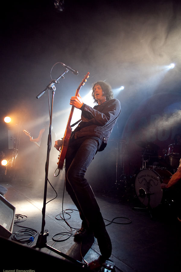 Petit son au démarrage, batterie instable, batteur intérimaire pour ces quelques dates (Kelli Scott, quand même, pas le dernier guignol venu, le mec ayant joué avec QOTSA, Guns’N’Roses, etc…), et salle en cours de remplissage aussi tôt dans la soirée : tous ces facteurs rendent le début de ce set un peu chaotique. Le trio peine à prendre ses marques, mais aligne quand même les plus efficaces brulôts de son dernier album fraîchement sorti dans les bacs : « Love Like Blood », « Show Me your Teeth » (avec son intro), ça dépote pas mal. Le prodigieux « Cyclone » perd un peu de sa pêche sous ce format, il va falloir trouver un format qui le rende plus percutant, à la hauteur de son impact « vinylique ». Après une petite poignée de titres, le groupe est bien chaud et la machine est en route quand… le concert s’achève ! Ce format « showcase » (set très court, composé essentiellement de titres du dernier album) s’avère frustrant, et on fait quelque peu la moue en voyant le groupe ranger ses instruments…