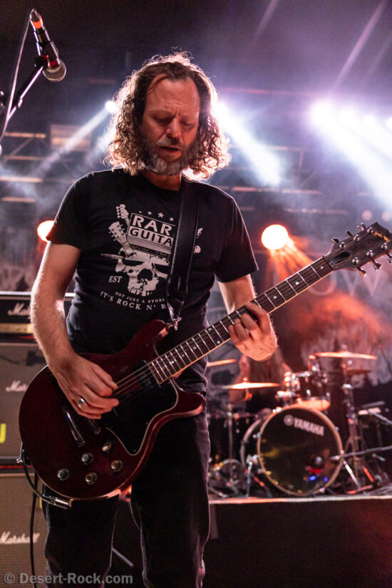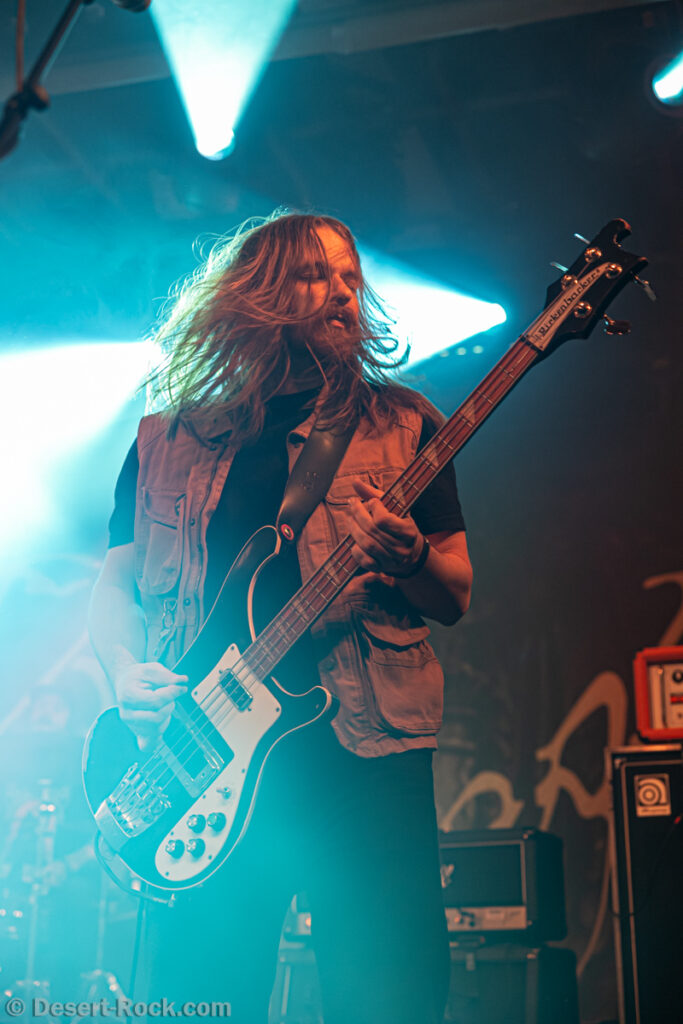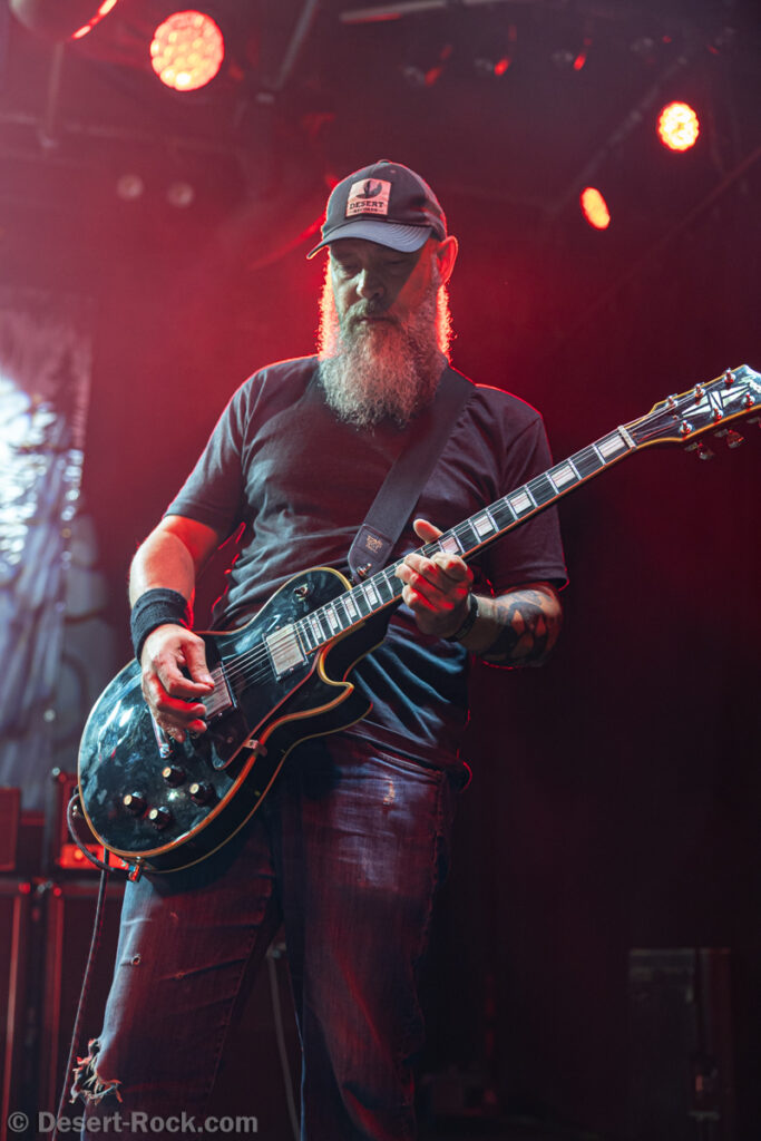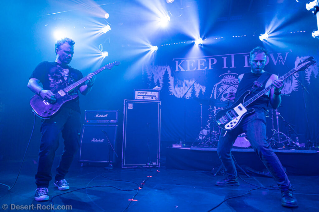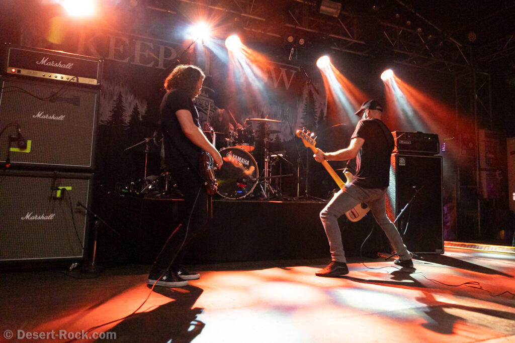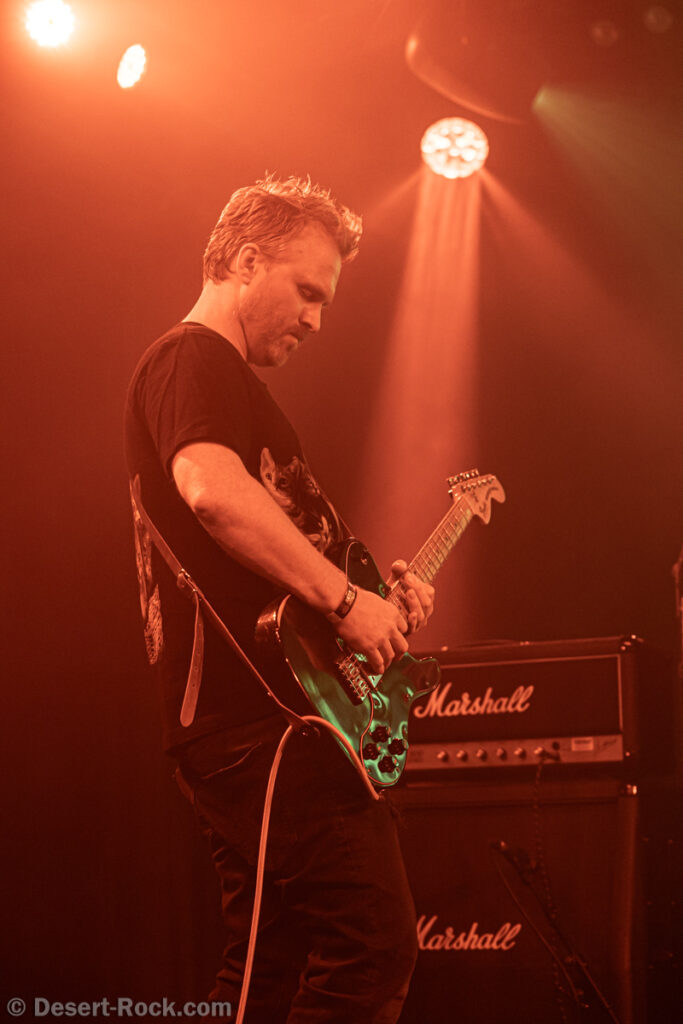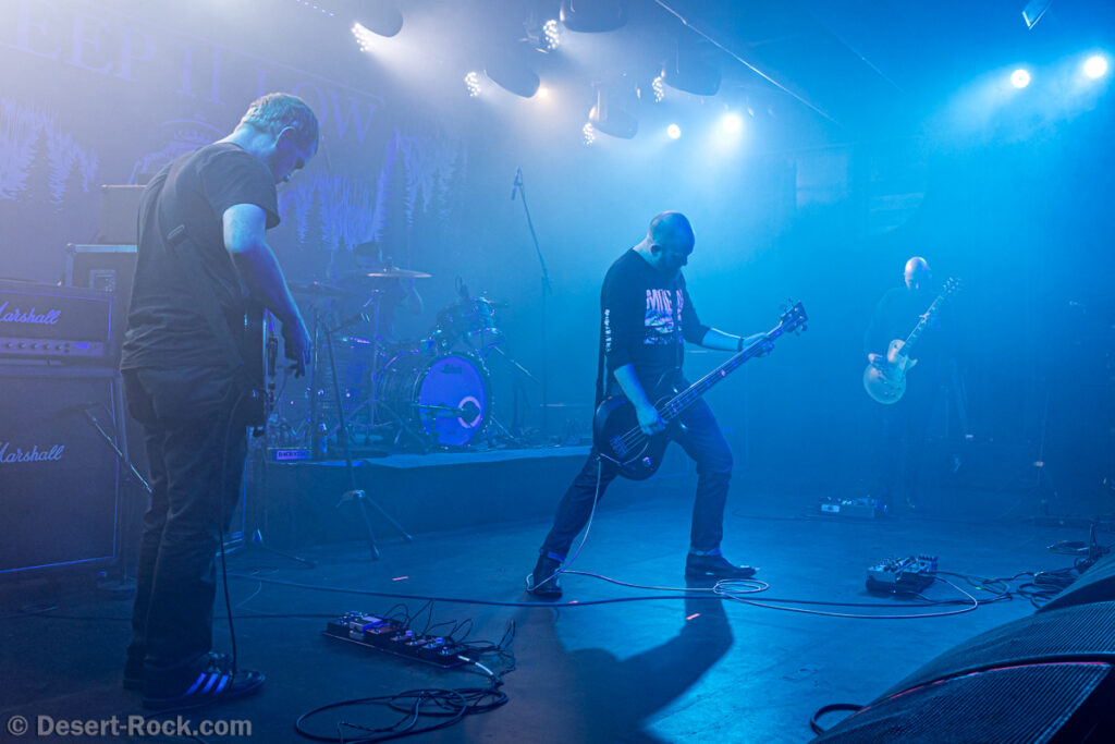 Les américains, avec 3 albums discrets sous le bras (2 et demi, disons), sont pour la première fois en tournée européenne et en profitent pour faire une escale au Keep It Low. Même si le groupe n’est pas ancien, sur la scène ce ne sont pas des jeunots, et ça sent le sérieux : ça joue bien et fort (mention spéciale au batteur, surexcité derrière son kit, tandis que le guitariste et le bassiste sont plus sages sur leur côté de la scène). L’entame (et la majorité du concert en fait) fait la part belle à la seconde galette du groupe (leur 3ème disque vient à peine de sortir), propice à faire découvrir au public leur stoner rock puissant et varié, avec des passages plus aériens et d’autres plus rentre-dedans (à l’image du très Kyuss-ien « Marigold », extrait de leur dernière galette). Jadd Schickler leur chanteur (par ailleurs à la ville manager de plusieurs labels prestigieux, dont Magnetic Eye ou Blues Funeral aujourd’hui, ou Meteorcity en son temps) apporte ce petit bonus au groupe en proposant des lignes de chant clair ou hurlées efficaces. A noter que le groupe termine son set par sa reprise du « Head Like a Hole » de Nine Inch Nails, qui s’intégère bien (sans déchaîner les foules non plus…). Un très bon set, qui serait meilleur avec un peu plus d’aisance scénique – constat magnifié en particulier après le set de leurs successeurs sur la grande scène…