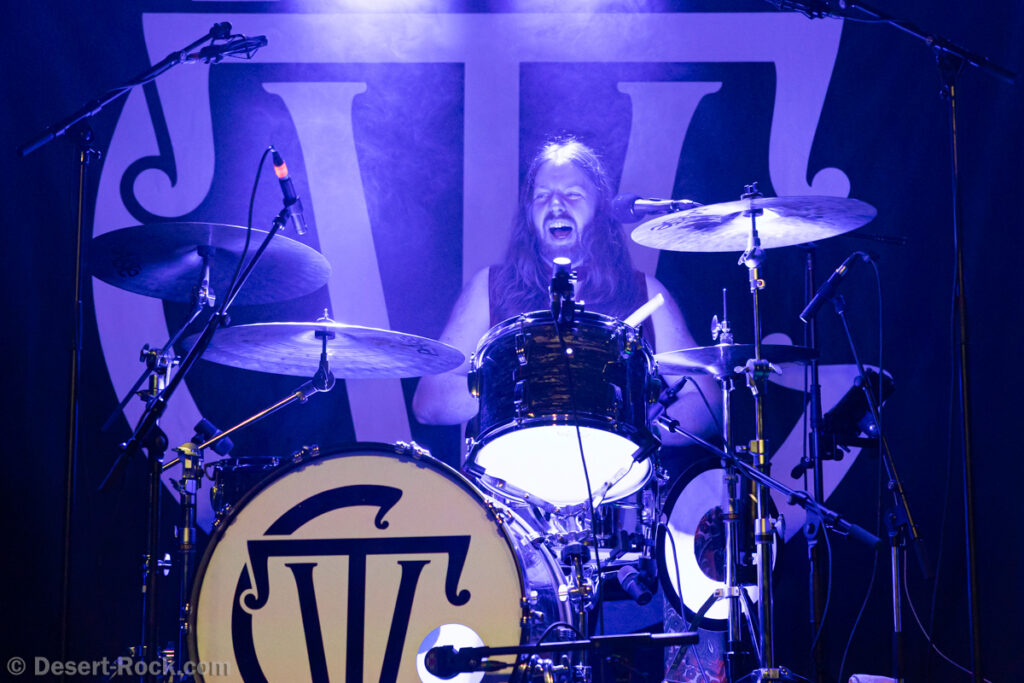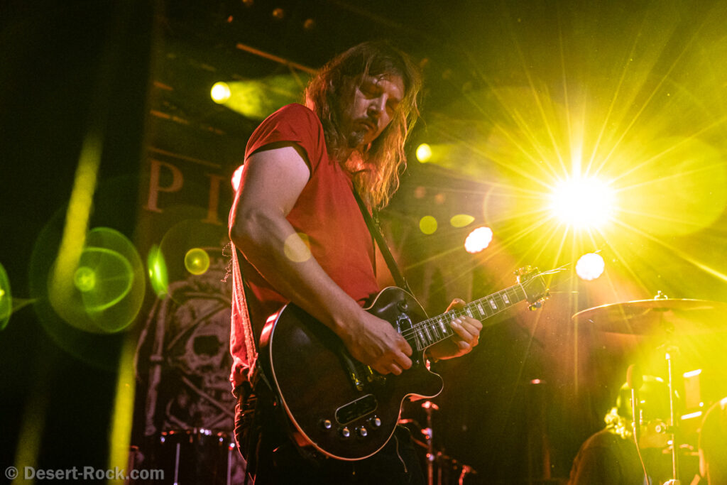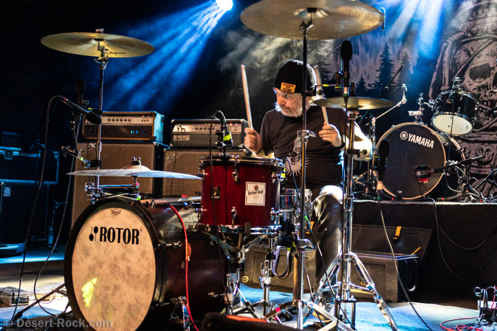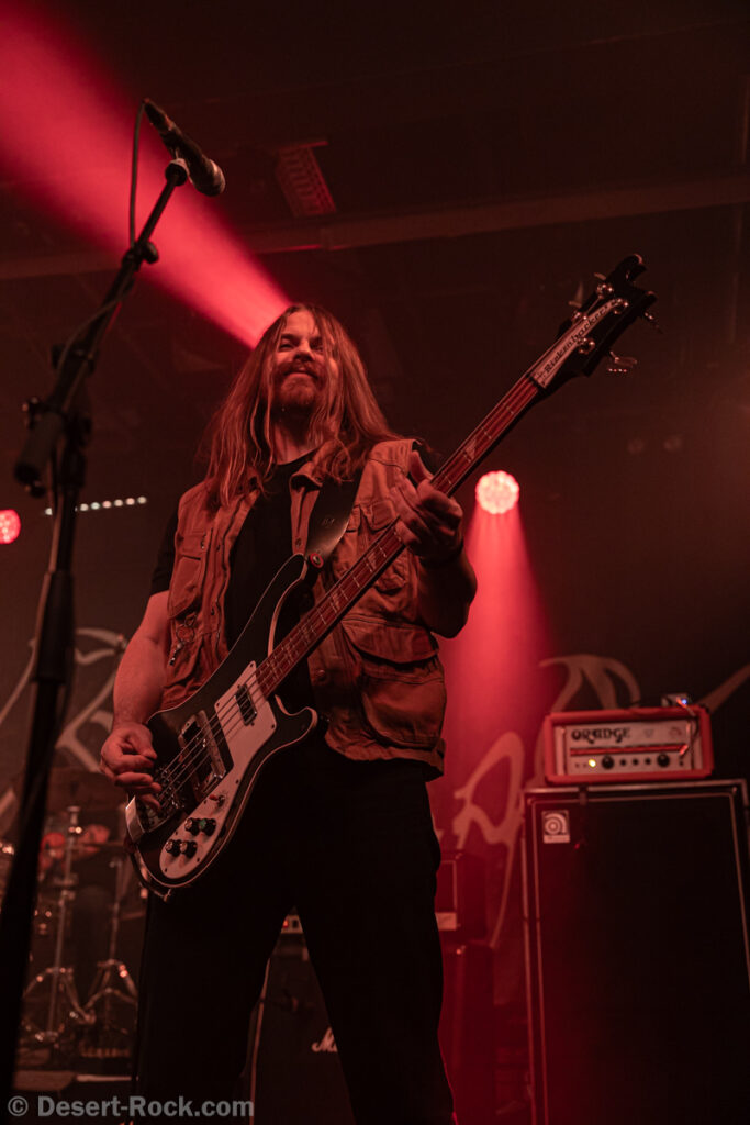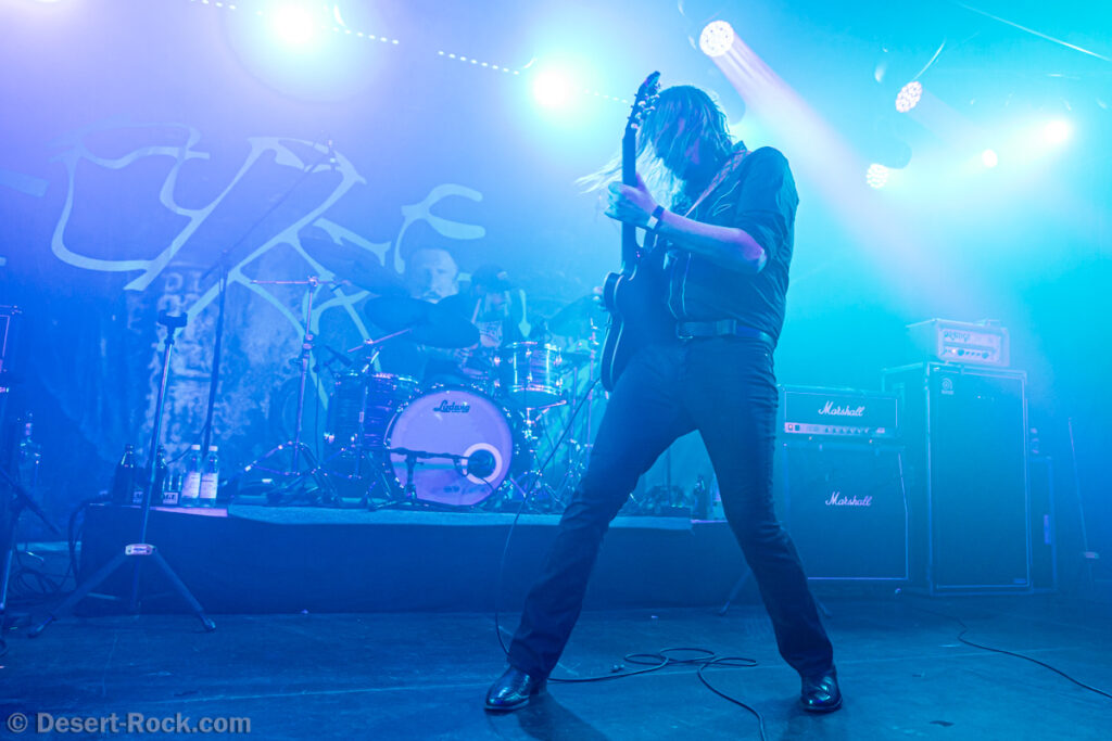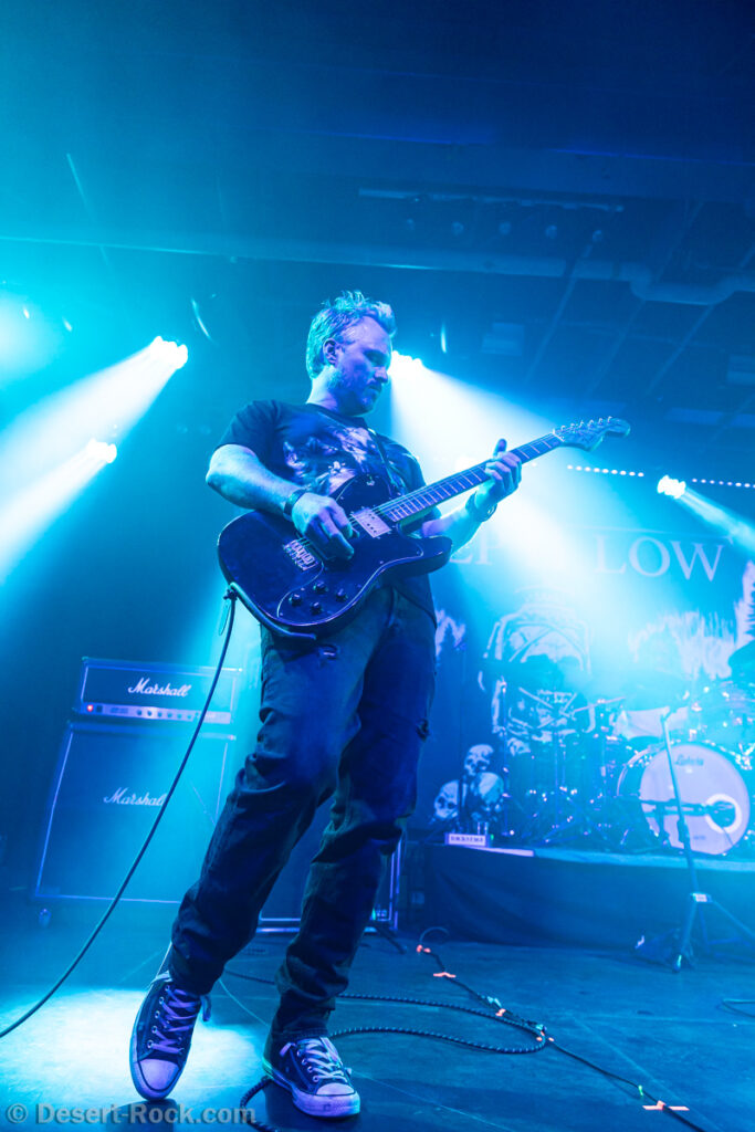 Les américains, avec 3 albums discrets sous le bras (2 et demi, disons), sont pour la première fois en tournée européenne et en profitent pour faire une escale au Keep It Low. Même si le groupe n’est pas ancien, sur la scène ce ne sont pas des jeunots, et ça sent le sérieux : ça joue bien et fort (mention spéciale au batteur, surexcité derrière son kit, tandis que le guitariste et le bassiste sont plus sages sur leur côté de la scène). L’entame (et la majorité du concert en fait) fait la part belle à la seconde galette du groupe (leur 3ème disque vient à peine de sortir), propice à faire découvrir au public leur stoner rock puissant et varié, avec des passages plus aériens et d’autres plus rentre-dedans (à l’image du très Kyuss-ien « Marigold », extrait de leur dernière galette). Jadd Schickler leur chanteur (par ailleurs à la ville manager de plusieurs labels prestigieux, dont Magnetic Eye ou Blues Funeral aujourd’hui, ou Meteorcity en son temps) apporte ce petit bonus au groupe en proposant des lignes de chant clair ou hurlées efficaces. A noter que le groupe termine son set par sa reprise du « Head Like a Hole » de Nine Inch Nails, qui s’intégère bien (sans déchaîner les foules non plus…). Un très bon set, qui serait meilleur avec un peu plus d’aisance scénique – constat magnifié en particulier après le set de leurs successeurs sur la grande scène…