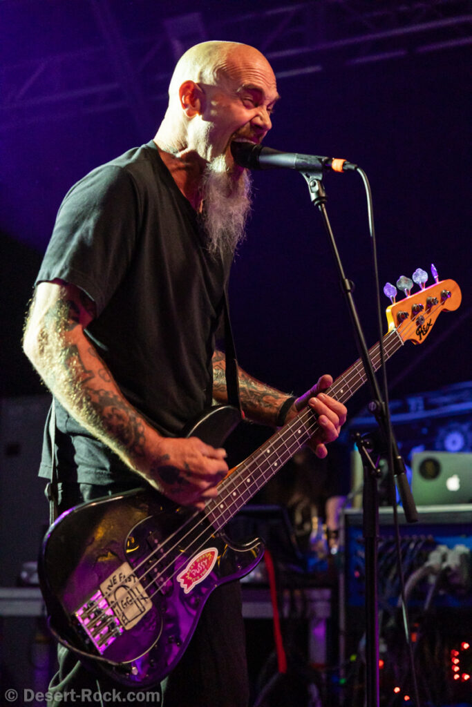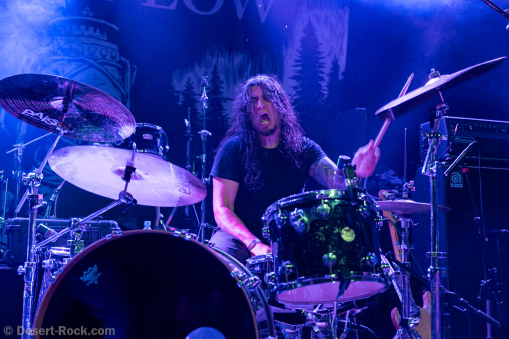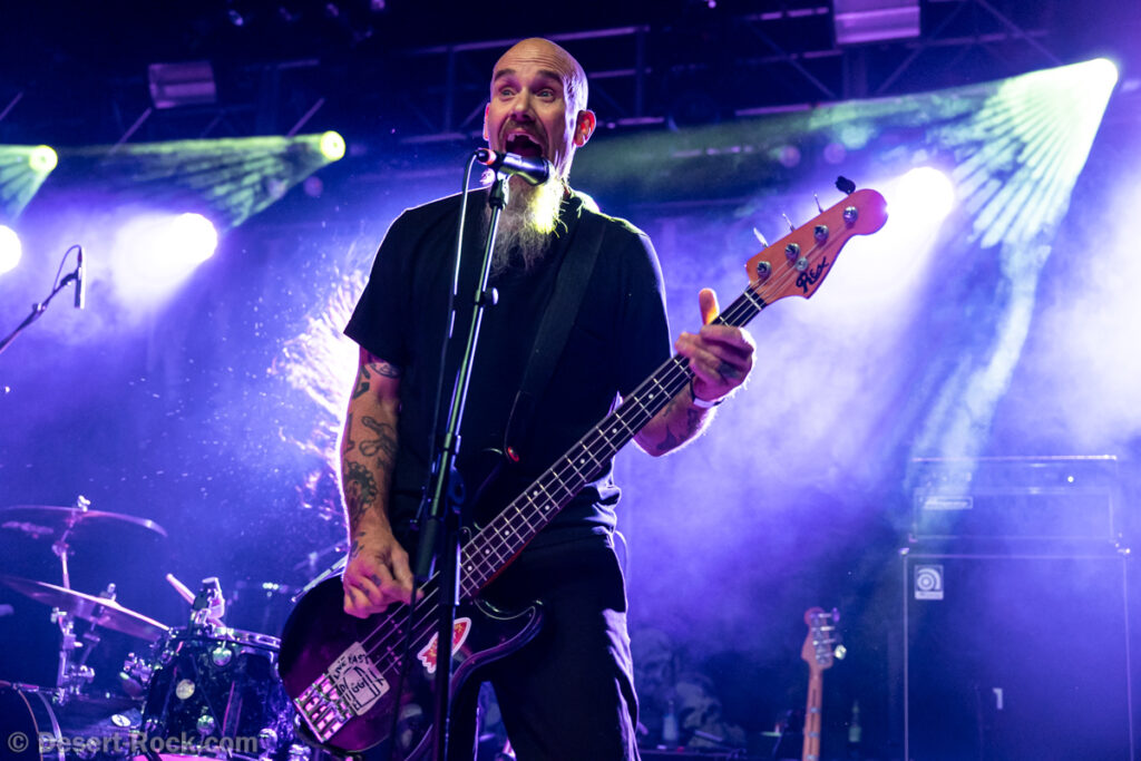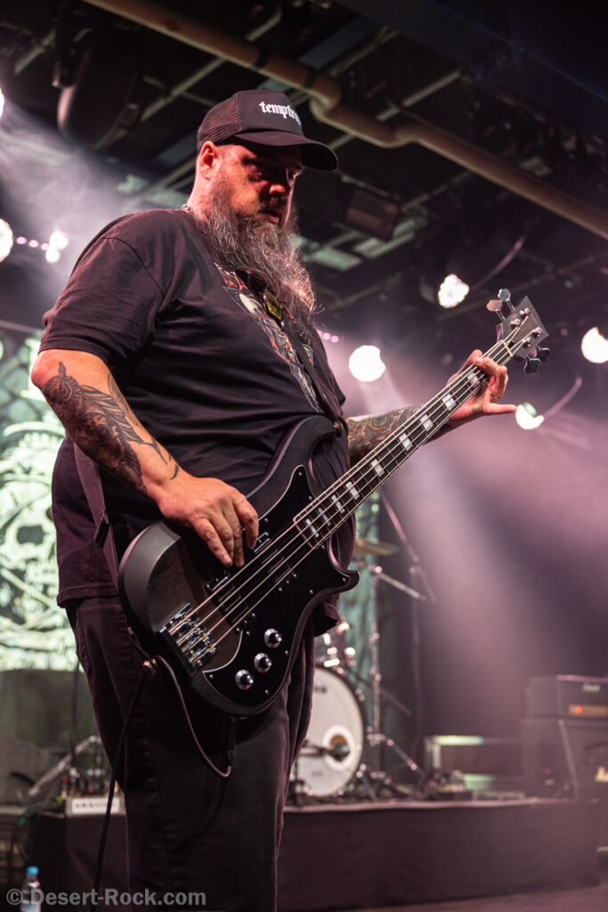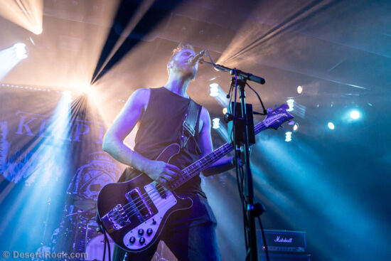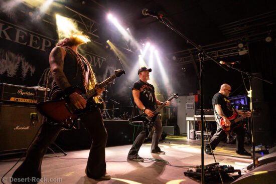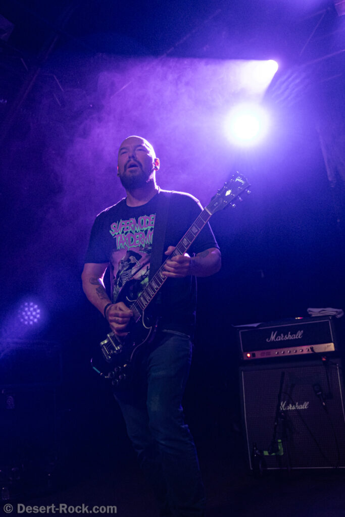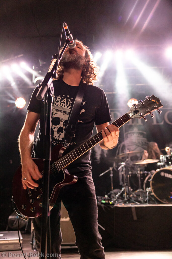 Les américains, avec 3 albums discrets sous le bras (2 et demi, disons), sont pour la première fois en tournée européenne et en profitent pour faire une escale au Keep It Low. Même si le groupe n’est pas ancien, sur la scène ce ne sont pas des jeunots, et ça sent le sérieux : ça joue bien et fort (mention spéciale au batteur, surexcité derrière son kit, tandis que le guitariste et le bassiste sont plus sages sur leur côté de la scène). L’entame (et la majorité du concert en fait) fait la part belle à la seconde galette du groupe (leur 3ème disque vient à peine de sortir), propice à faire découvrir au public leur stoner rock puissant et varié, avec des passages plus aériens et d’autres plus rentre-dedans (à l’image du très Kyuss-ien « Marigold », extrait de leur dernière galette). Jadd Schickler leur chanteur (par ailleurs à la ville manager de plusieurs labels prestigieux, dont Magnetic Eye ou Blues Funeral aujourd’hui, ou Meteorcity en son temps) apporte ce petit bonus au groupe en proposant des lignes de chant clair ou hurlées efficaces. A noter que le groupe termine son set par sa reprise du « Head Like a Hole » de Nine Inch Nails, qui s’intégère bien (sans déchaîner les foules non plus…). Un très bon set, qui serait meilleur avec un peu plus d’aisance scénique – constat magnifié en particulier après le set de leurs successeurs sur la grande scène…