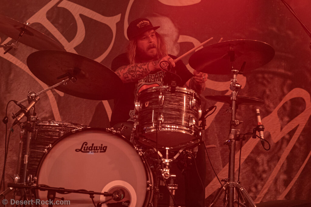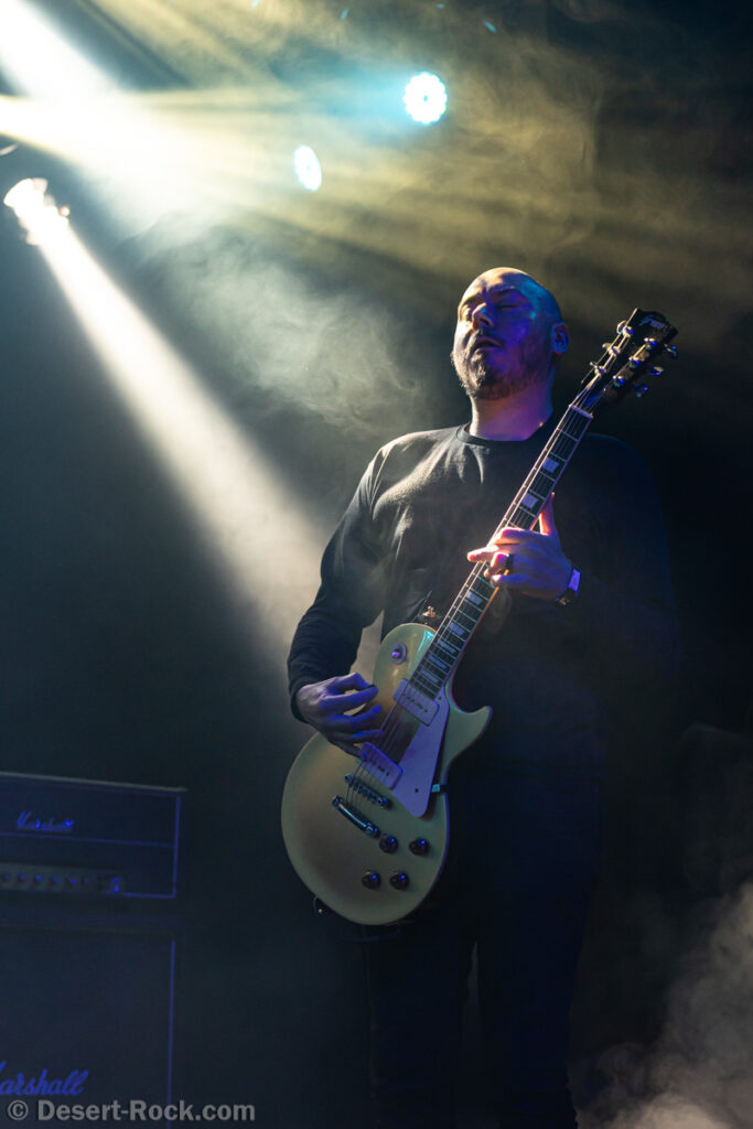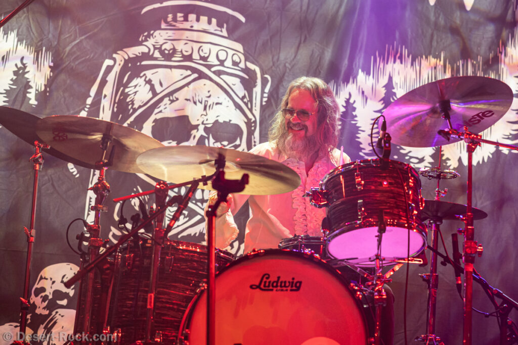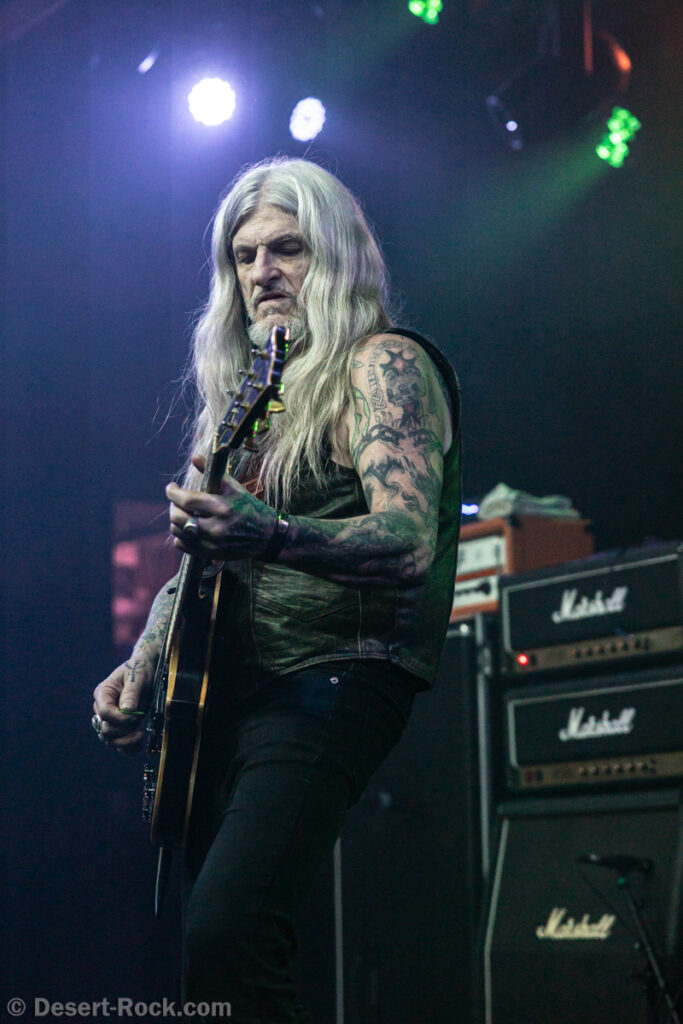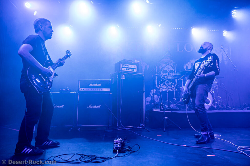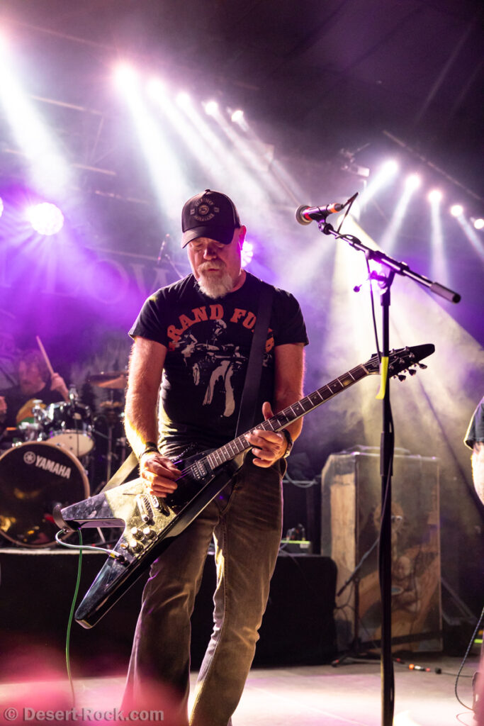 Les 5 musiciens de Lowrider (oui pour rappel il y a désormais un claviériste à faible valeur ajoutée dans la formation) entament le set de ce soir par le groovy « Caldera », issu de leur dernier LP, prétexte à une sorte de jam planante parfaite pour faire monter la pression, même si un peu trop longue. Les choses sérieuses commencent ensuite dès « Sernanders Krog » et se poursuivent pendant 50 minutes de haut niveau. La set list présente peu de surprises, faisant la part belle à ses derniers disques… si ce n’est ce délicieux et rugueux “Convoy V” ressorti du placard à archives, pour lequel le groupe accueille sur scène rien moins que Jadd Schickler pour assurer les chœurs, en rappelant que c’est lui, manager de MeteorCity, qui les a signés pour leur premier album il y a 25 ans ! Un moment de grâce où le groupe se décide enfin à (re)jouer sur scène l’un de ses titres les plus remarquables (même James Hetfield le dit !)… que l’on espère trouver à nouveau dans leurs prochaines set lists ! Quel gâchis de le laisser végéter au profit de chansons parfois moyennes. Comme d’habitude, et ce malgré sa faible quantité de concerts joués chaque année (une poignée de festivals et c’est tout), le groupe est bien en place (on parle trop peu de la qualité de son batteur Andreas Eriksson, qui tient l’édifice avec robustesse et talent) et les titres sont interprétés avec la juste touche de rigueur et de customisation “live”. Bref, efficace et fun, tout ce qu’on attendait !