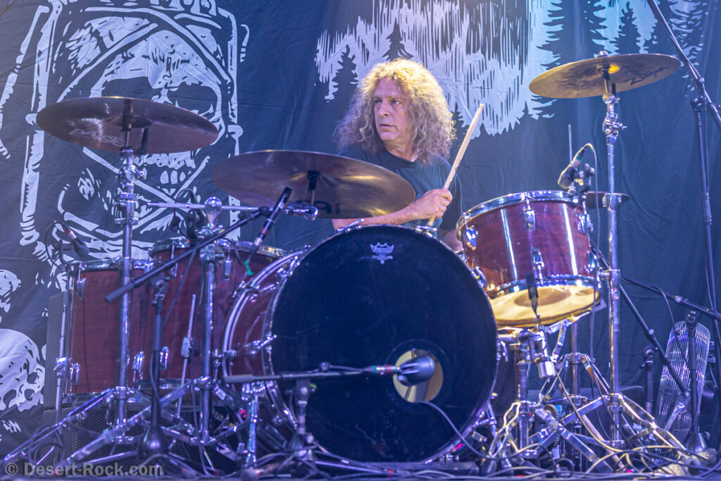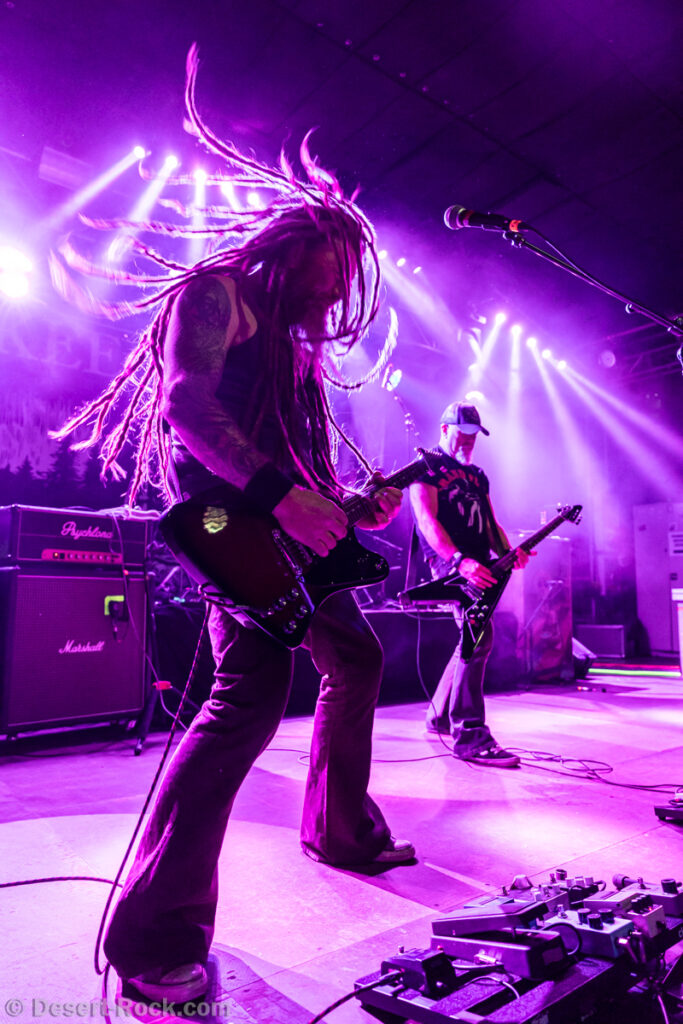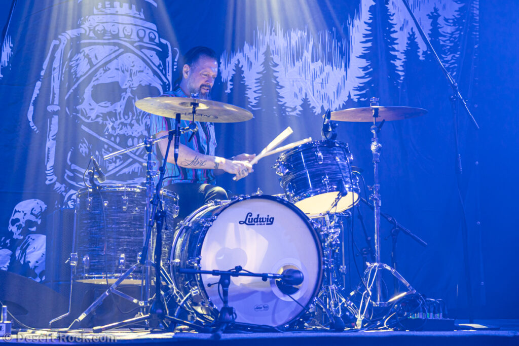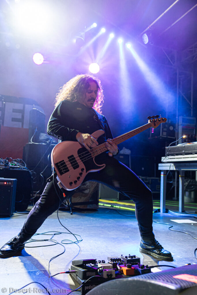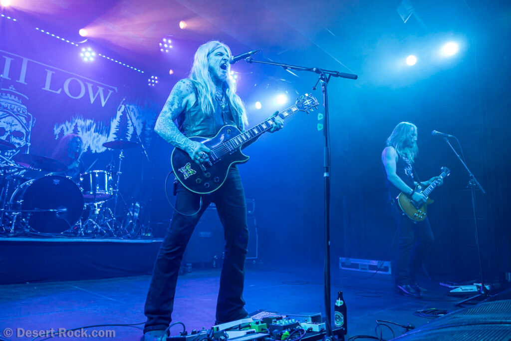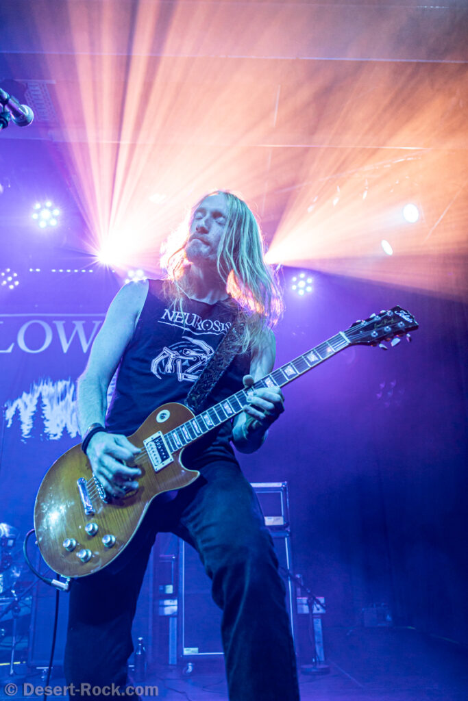 Les 5 musiciens de Lowrider (oui pour rappel il y a désormais un claviériste à faible valeur ajoutée dans la formation) entament le set de ce soir par le groovy « Caldera », issu de leur dernier LP, prétexte à une sorte de jam planante parfaite pour faire monter la pression, même si un peu trop longue. Les choses sérieuses commencent ensuite dès « Sernanders Krog » et se poursuivent pendant 50 minutes de haut niveau. La set list présente peu de surprises, faisant la part belle à ses derniers disques… si ce n’est ce délicieux et rugueux “Convoy V” ressorti du placard à archives, pour lequel le groupe accueille sur scène rien moins que Jadd Schickler pour assurer les chœurs, en rappelant que c’est lui, manager de MeteorCity, qui les a signés pour leur premier album il y a 25 ans ! Un moment de grâce où le groupe se décide enfin à (re)jouer sur scène l’un de ses titres les plus remarquables (même James Hetfield le dit !)… que l’on espère trouver à nouveau dans leurs prochaines set lists ! Quel gâchis de le laisser végéter au profit de chansons parfois moyennes. Comme d’habitude, et ce malgré sa faible quantité de concerts joués chaque année (une poignée de festivals et c’est tout), le groupe est bien en place (on parle trop peu de la qualité de son batteur Andreas Eriksson, qui tient l’édifice avec robustesse et talent) et les titres sont interprétés avec la juste touche de rigueur et de customisation “live”. Bref, efficace et fun, tout ce qu’on attendait !