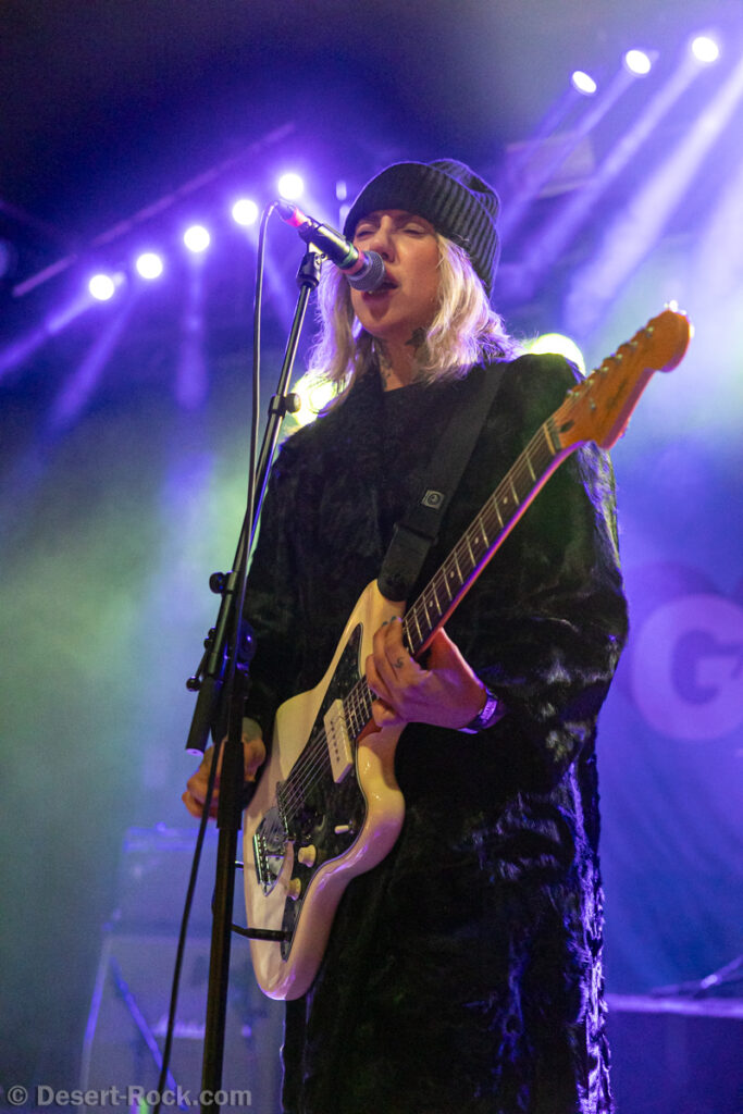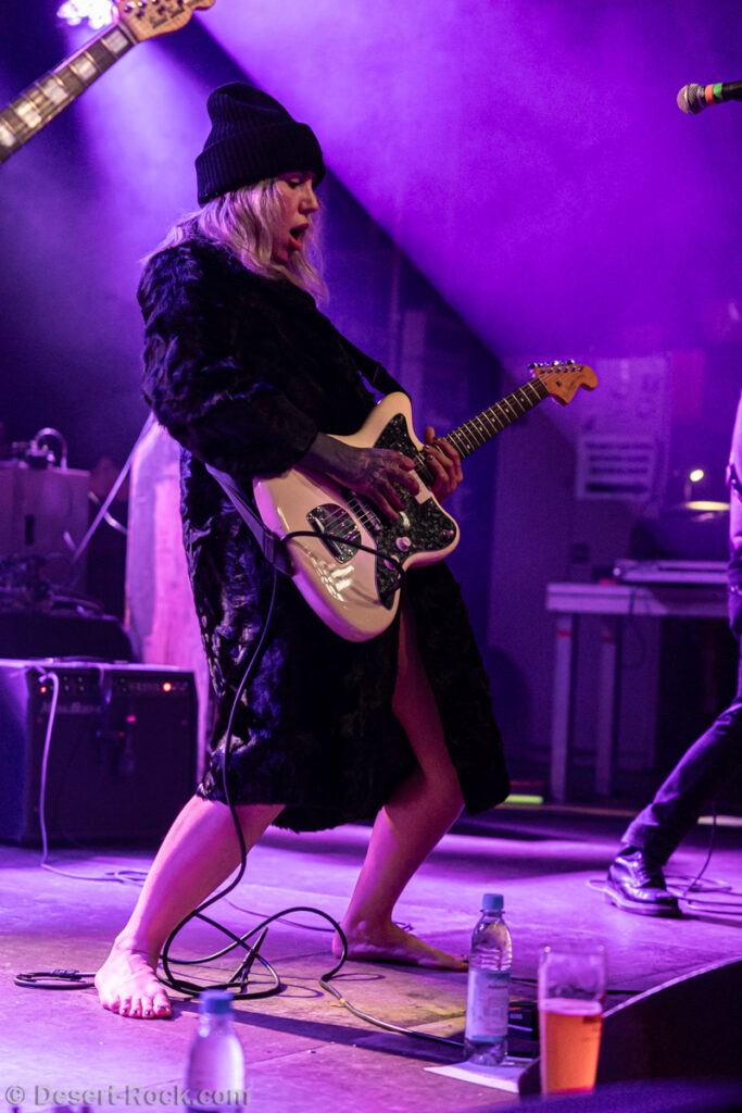 Godsleep… un mélange de Godflesh et de Sleep ? Le doute est vite éloigné à notre dernière incursion dans la Halle pour célébrer la fin du festival. Le quartet grec (une nation abreuvant régulièrement la scène stoner de formations de qualité) se présente devant un public moins dense que d’habitude, où se mêlent fatigue, ébriété occasionnelle, effets de fumées « récréatives »… Pour remuer cette masse un peu amorphe, il faut y aller avec conviction et énergie, et c’est ce à quoi s’emploie la formation athénienne. Emmenée par la furieuse frontwoman Amie Makris (qui se présente dans un grand épais manteau et bonnet épais, avant de vite faire tomber le tout pour une tenue plus « athlétique »), le groupe déroule un set de stoner rock vitaminé à forte composante mélodique (encore une marque de fabrique des groupes de stoner grecs). On sent quelques influences stoner/grunge ici ou là, mais fondamentalement, ça sent la fuzz énergisée avant tout. Le public présent met ses dernières forces dans la bataille, et le concert (et le festival) se termine(nt) sur une touche ultra positive.