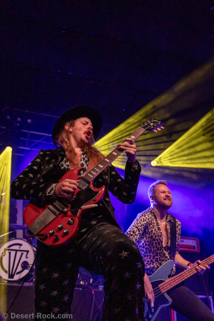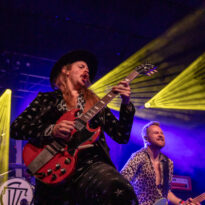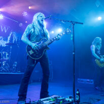 De manière prévisible, la Halle est – à nouveau – pleine comme un œuf quand on quitte Wino pour aller y voir le trio islandais. Il faut dire que la réputation scénique de la formation n’est plus à faire, et il ne leur faut pas longtemps pour rappeler à tout le monde pourquoi. L’énergie déployée par les jeunes retro rockers est remarquable, et cette entame bien énergique cartonne. Alexander, moins contraint que Óskar qui est souvent accroché à son micro ou son rack de pédales d’effets, arpente la scène en tous sens et vient au contact du public, haranguer la fosse pour lui soutirer quelques cris ou poings tendus ; un public qui lui mange dans la main. La set list qui déroule enchaîne les pépites de gros heavy rock, sans temps mort. Même les extraits moins connus de leur dernier album fraîchement sorti, passent crème. Rien à redire, on peut aimer leur musique ou pas sur disque, mais en tous les cas force est de reconnaître que sur scène The Vintage Caravan est redoutable.