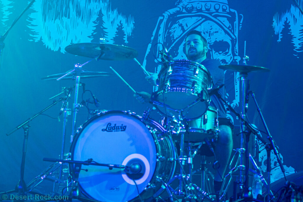 En quelques secondes, High Desert Queen a tout simplement conquis le Keep It Low. Le gros riff de « Palm Reader » en intro, le sourire et l’énergie du chanteur Ryan Garney, il n’en faut pas plus ! Sur disque pourtant, la musique sympathique du quatuor a du mal à se détacher de la « concurrence » de dizaines d’autres groupes dans des sphères musicales proches ; intéressant, mais manquant de « caractère ». Sur scène, c’est une toute autre paire de manches : comptant notamment sur Jason Casanova (bassiste de Sasquatch) à la 4-cordes, le groupe aligne les compos avec une vraie envie d’apporter du plaisir à l’auditoire. Garney arpente la scène avec le sourire (tellement rare chez les autres groupes !), s’adresse au public, interagit avec ses collègues, danse, saute,… il est intenable, et capte une large part de l’attention. Pendant ce temps, les chansons défilent, presque toutes issues de leur second disque, sorti l’an dernier. En capitalisant sur le groove impeccable de ses compos, le quatuor californien emporte la timbale. De ces surprises qui font tout le sel d’un festival. A revoir, vite !