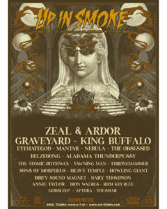 ZEAL & ARDOR, MANTAR, KING BUFFALO, THE OBSESSED, ALABAMA THUNDERPUSSY, GRAVEYARD, EYEHATEGOD, NEBULA, BELZEBONG, THE ATOMIC BITCHWAX, YAWNING MAN, etc…