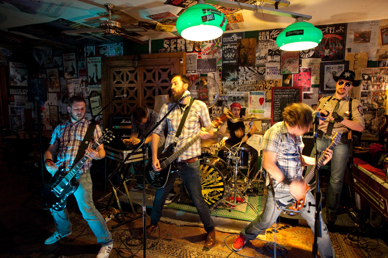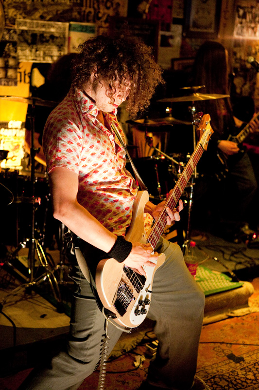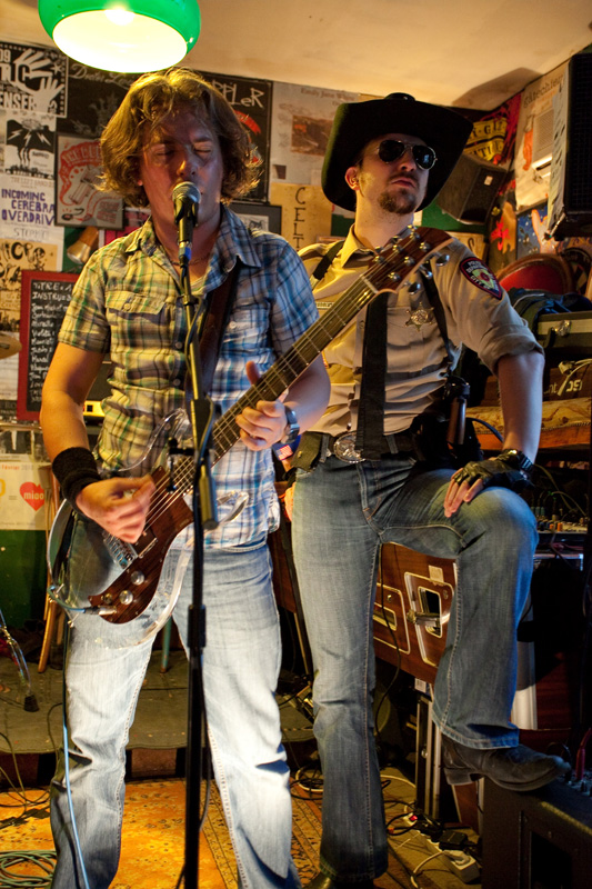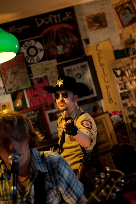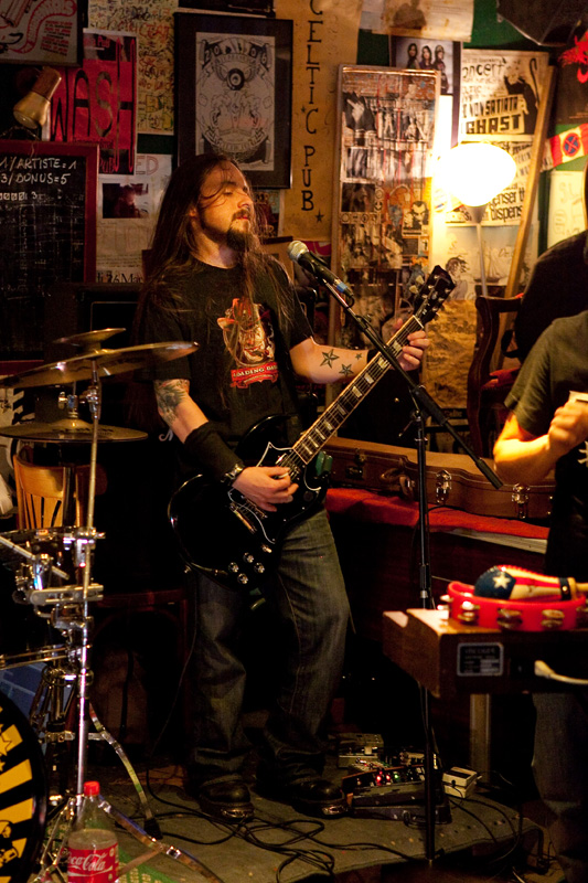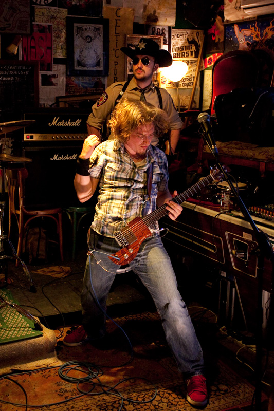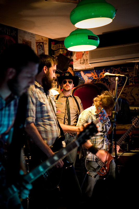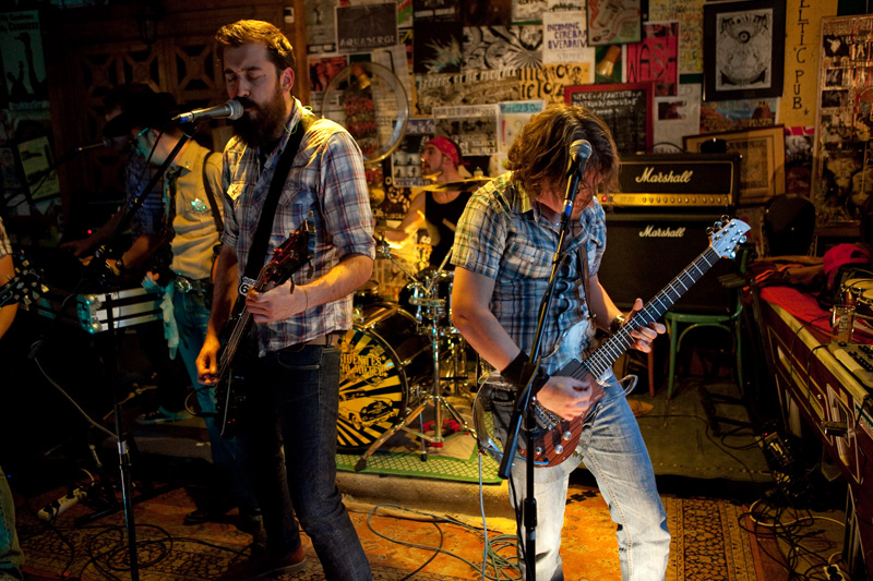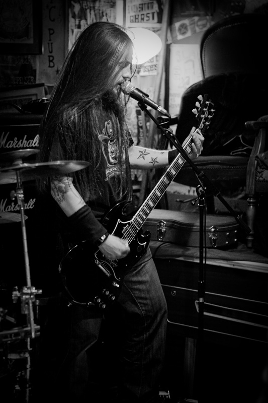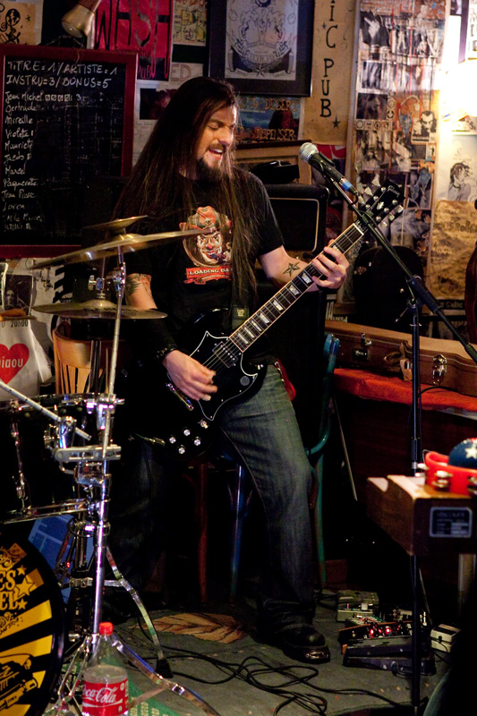 Le set défile tandis que progressivement le groupe rentre bien dedans et devient vite bouillant : tandis qu’un public bon enfant remplit convenablement ce sympathique pub de faible capacité (plusieurs dizaines de personnes), le groupe se donne sur la petite estrade comme s’il était sur les planches de Bercy devant 20 000 personnes ! Quelques morceaux plus rares viennent émailler une set list largement constituée de titres de leur excellent 1er album, passant de titres ultra-rapides (« Under the sun of New Mexico ») à des mid-tempo bien heavy (« Brotherhood ») sans jamais perdre en intensité, jusqu’à une reprise du « Helter Skelter » des Beatles. Pour agrémenter la présence scénique du groupe, le shériff évolue sur scène, dans le public, renforçant l’ambiance fun qui se dégage du concert, clairement partagée par le groupe. Super concert d’un groupe qui clairement ne se cantonne pas à de superbes compos vinylisées, mais confirme son talent en bouffant la scène comme peu de groupes savent le faire.