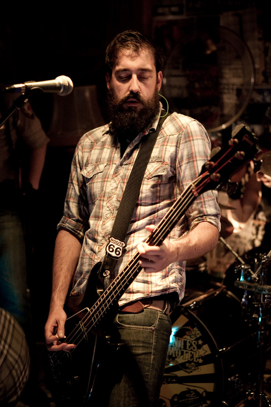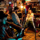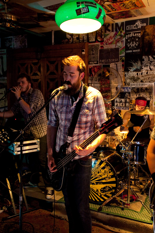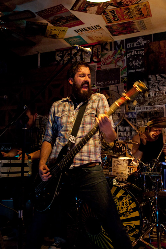 Pour cause de couvre-feu à 22h précises, les concerts du jour au Celtic Pub commencent tôt, dès 20h, ce qui perturbe un peu Los Disidentes Del Sucio Motel (jouer à l’heure de l’apéro, imaginez !). Pour autant, l’entame de set ne souffre pas de faiblesse : malgré une salle en train de se remplir petit à petit et une scène étrangement baignée par la lumière du jour, le groupe prend rapidement confiance en interprétant les deux premiers titres de son album, « Sir Dany Jack » et « All Alone ».