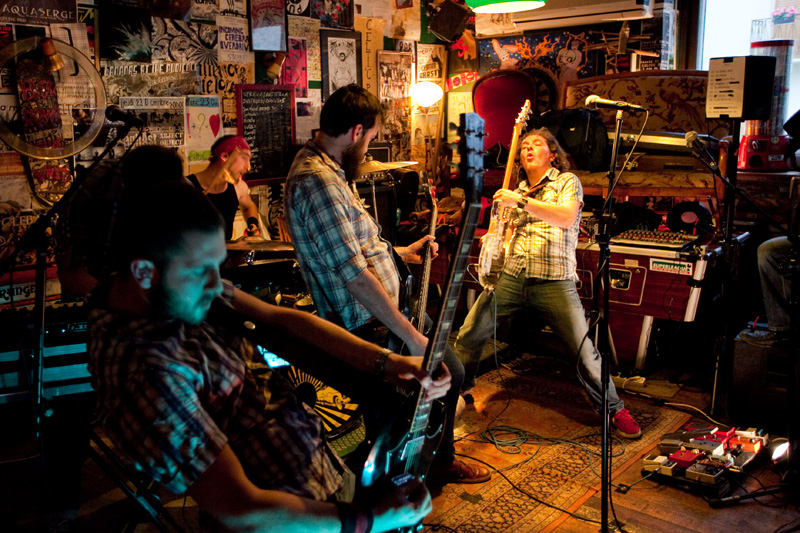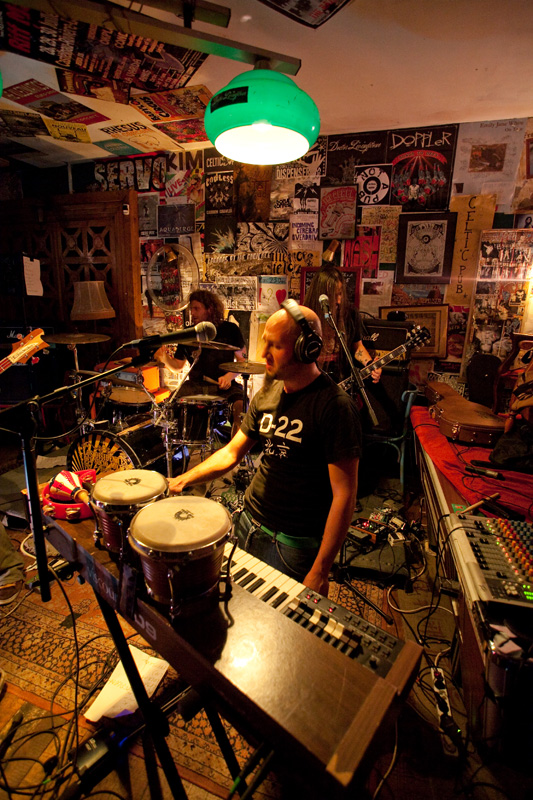 Quelques minutes à peine suffisent à permuter les groupes et à permettre à Water Pipe Cult de dégainer ses premiers accords. A noter que les deux groupes amis ont partagé la scène quelques dates ces derniers jours, et ont alterné l’ordre de passage. Le ton change quelque peu avec WPC, qui s’affirme sur une tonalité un peu plus « sérieuse » (même si, durant tout le set, les Disidentes n’ont pas manqué de participer activement au concert dans la bonne humeur, depuis le public). Les titres du groupe, moins « in your face » que LDDSM, ne déçoivent pas : compositions aux structures variées, riffs véloces, clavier efficace, du groove à revendre…