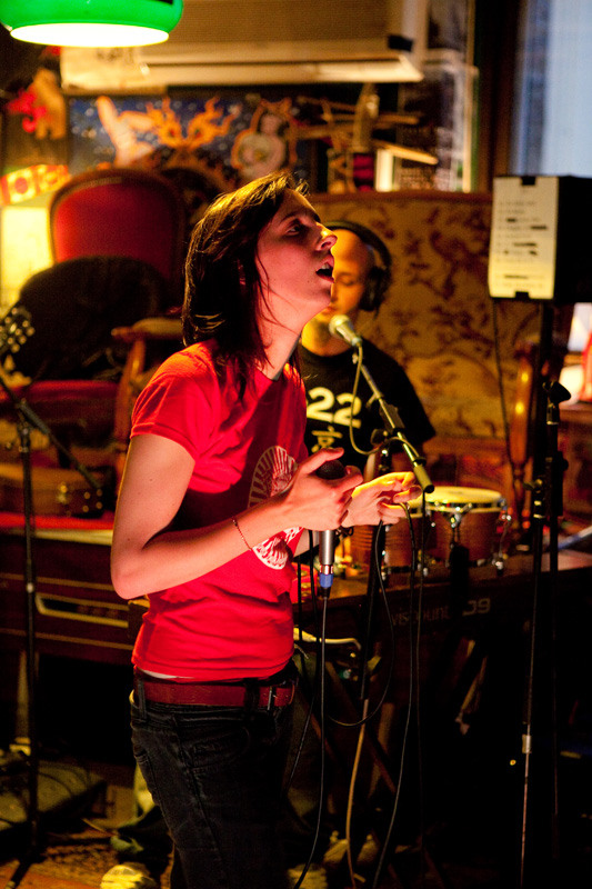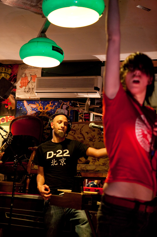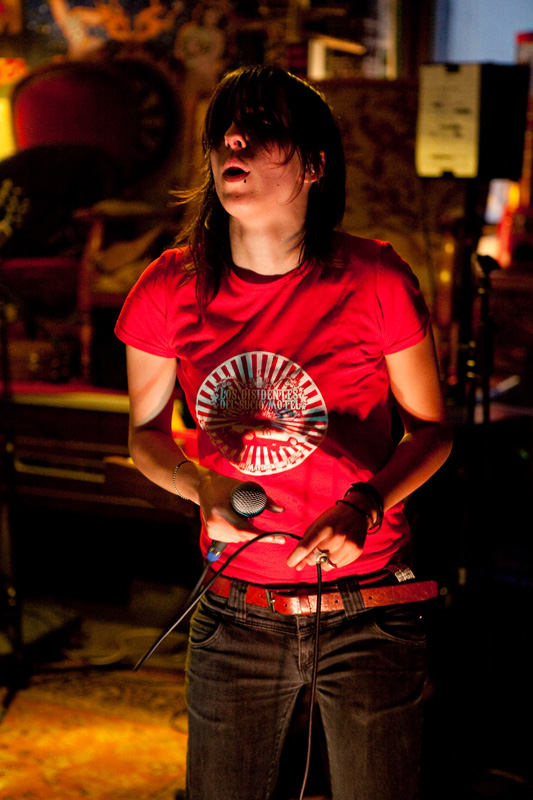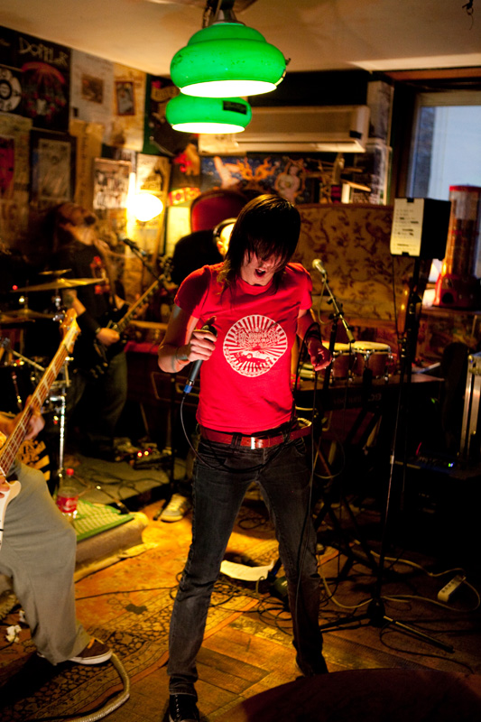 L’interprétation ne souffre pas vraiment de critique, et scéniquement, tandis que les guitaristes et bassiste sont quelque peu statiques (concentrés), c’est clairement Caroline, chanteuse montée sur ressort, qui mène la barque : elle arpente la scène de long en large, va chanter dans le public, monte sur les tables, initie un pogo avec les membres de LDDSM… Le set un peu court (comme Los Disidentes, un peu moins d’une heure) se termine pied au plancher, la bave aux lèvres pour le groupe, et le sourire sur le visage pour le public !