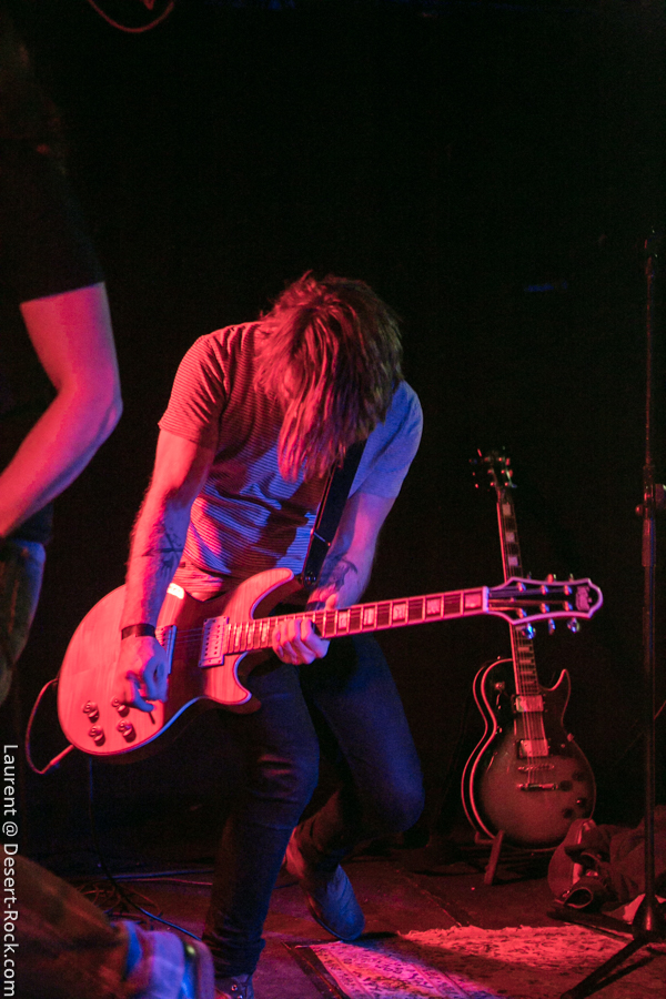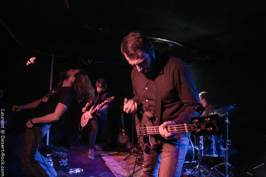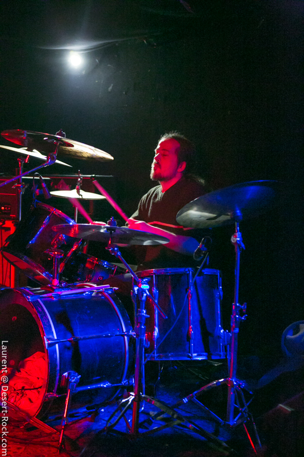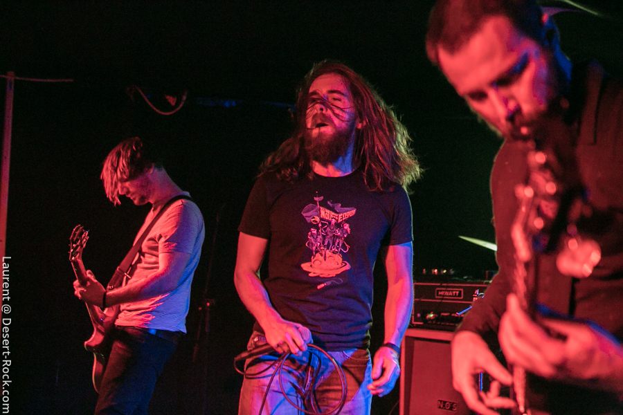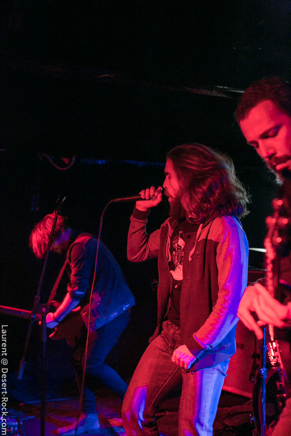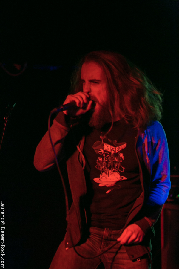 C’est les montpelliérains de Denizen qui ouvrent le bal ce soir. Groupe français passé sous mon radar depuis des années, je découvre un quatuor de grande qualité. Trop peu de concerts ? Rendez-vous manqués ? Promo mal ajustée ? Mauvais timing ?… Les raisons de cette découverte tardive sont à trouver quelque part là dedans, mais peu importe : apprécions le moment présent ! Le set déroulé sous les yeux d’une assistance de bonne composition (à vue de nez un Void à peu près moitié rempli, ce qui n’est pas mal du tout pour des groupes de notoriété intermédiaire et une date pendant les vacances scolaires) est de très bonne facture : c’est carré, ça joue bien, et le groupe dispense une énergie sur scène qui n’est pas forcément habituelle chez leurs homologues. Faut voir Fabien le chanteur arpenter dans tous ses recoins la micro-scène du Void et headbanguer dans tous les sens, si possible en bousculant ses potos musicien (là où y’a de la gène…) voire en allant se frotter au public en allant beugler depuis le pit. A l’aise. La communication passe bien avec le public, le chaleureux accent du Sud du lascar participant à l’ambiance bonenfant de l’ensemble. Musicalement, si on n’est pas transcendés par l’originalité de la chose, on apprécie les plans maîtrisés allant de passages trippants limite psyche à des tombereaux sludgesques de bon goût, agrémentés d’une profusion de passages à forte teneur Kyuss-ienne. Rien à jeter. Un groupe à suivre (oui, je suis bien conscient de l’absurdité d’un tel commentaire pour un groupe qui va gentiment sur ses 15 ans de carrière… Mais mieux vaut tard que jamais !).
