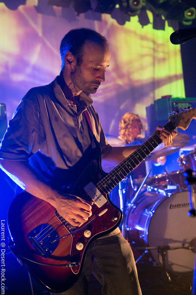 Un Julien Pras en tout point parfait ce soir, très en voix notamment (ses lignes de chant sont toujours justes, atteignant des notes improbables avec une apparente facilité) et toujours efficace sur ses parties de guitare, manipulant ses pédales d’effet comme un virtuose. Ses compères ne sont en outre pas en retrait, assurant la colossale rythmique et la base mélodique, éléments ô combien emblématiques du son du groupe. Rien de mieux pour illustrer cette parfaite alchimie qu’un titre instrumental, et ils nos dégotent à cet effet le lancinant « Arcadia », un titre rarement joué live, sur lequel ils semblent bien prendre leur pied. Enfin, rien de très déstabilisant pour la conclusion du set, avec « Marble Sky » et « Strong Reflection », très attendus.