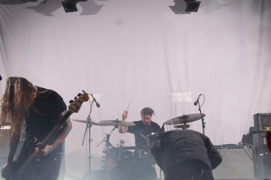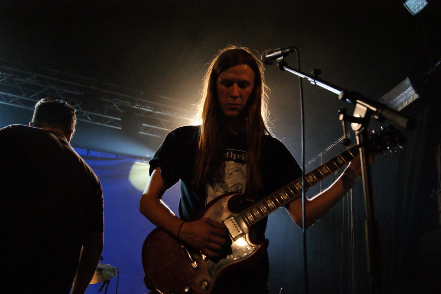 Impossible à priori pour Hangman’s Chair donc de clôturer ces trois jours… Impossible n’est pas Hangman’s! Immédiatement la salle pourtant encore fourbue du set de Igorr se fait cliente et si tout ceci n’est pas censé être positif, ce n’est pas pour autant négatif. La musique mélancolique de Hangman’s fait naître un sentiment de plénitude oubliée, au sentiment de bien être enfoui au plus profond de soi. En tout cas c’est ainsi que je reçois chaque note. Le gros plus du spectacle réside dans la maitrise des lumières. Le responsable à la console œuvrant pour les Metal Culture(s) est à 100% dans le set. Il est imbibé de ce que livrent les gars sur scène et tape du pied comme il headbang, vigoureusement et sans retenue. Et si l’ingé son semble endormi, il n’en est rien, les yeux fermés il savoure le son et maitrise sa table d’une main de maître. Indubitablement, Hangman’s Chair à l’instar de NNRA et Amenra possède la palette nécessaire pour donner vie à l’architecture et livrer tout le potentiel sonore du lieu.