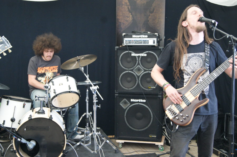Le troisème jour voit passer entre autres les grand-guignolesques Pensées Nocturnes, mélange de métal et de cuivre sous couches de maquillage. S’ensuit le Death-Thrash de Kamala chouchous du festival qui auront le droit à deux sets sous la Crypte, l’un amplifié, le second acoustique. Je passe volontairement sur la partie acoustique qui ne m’a pas tout à fait séduit mais le set électrifié dévoile toute la maitrise du groupe avec un gros coup de cœur pour une batteuse carrée et puissante à souhait.