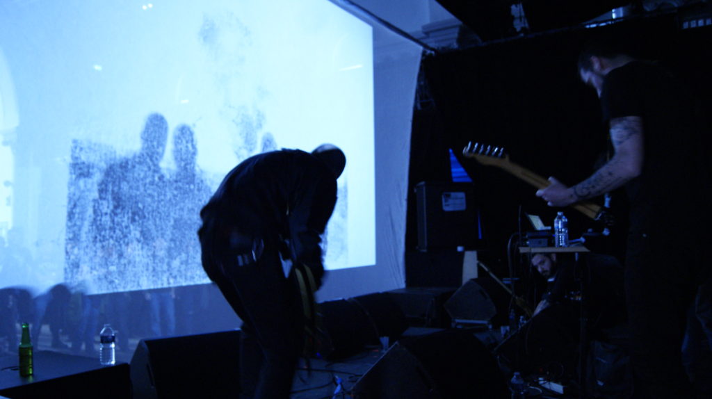 Les festivités débutent avec le set de NNRA, quintet français découvert lors des ultimes Doomed Gatherings et lors de quelques rares dates. Les musiciens se cachent derrière un voile par derrière lequel une projection les accompagne. C’est un pur bonheur de re-découvrir leur Doom expérimental ultra mélancolique. Immédiatement on prend conscience du potentiel du lieu comme du groupe, un son ample et maitrisé favorisé par l’architecture. Les compos soufflent la petite assemblée des festivaliers présents à cette heure (Les concerts débutent vers 18h), une bouffée d’émotion pure dans une orchestration parfaite. Côté scénographie, on devine les comparses derrière le voile et la vidéo inonde le public durant près de cinquante minutes. Une entrée en matière parfaite pour ce festival lilliputien.