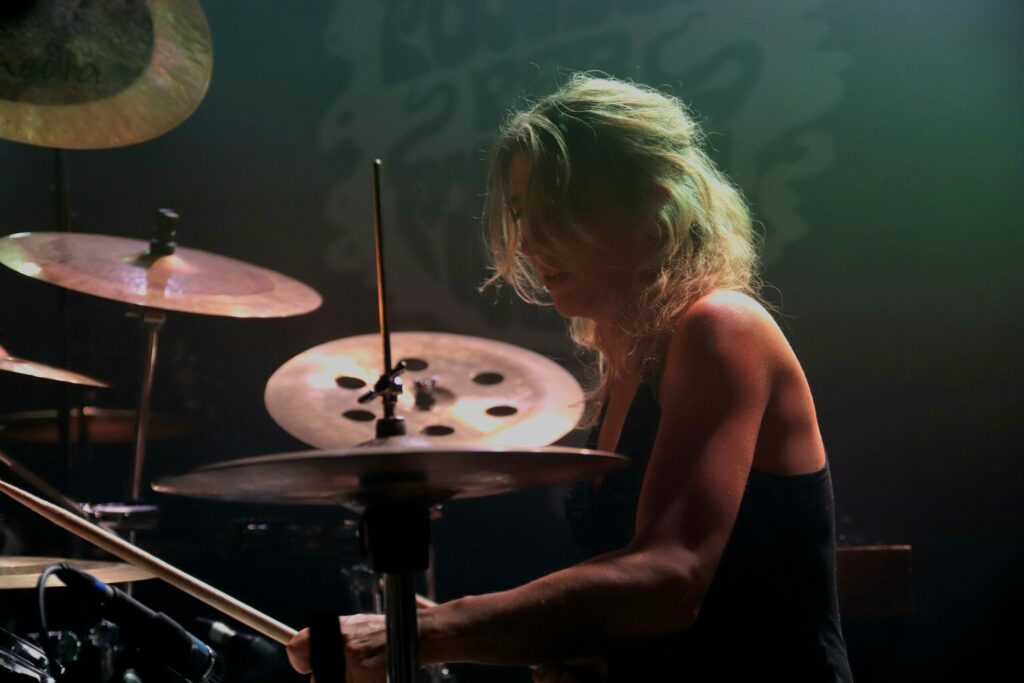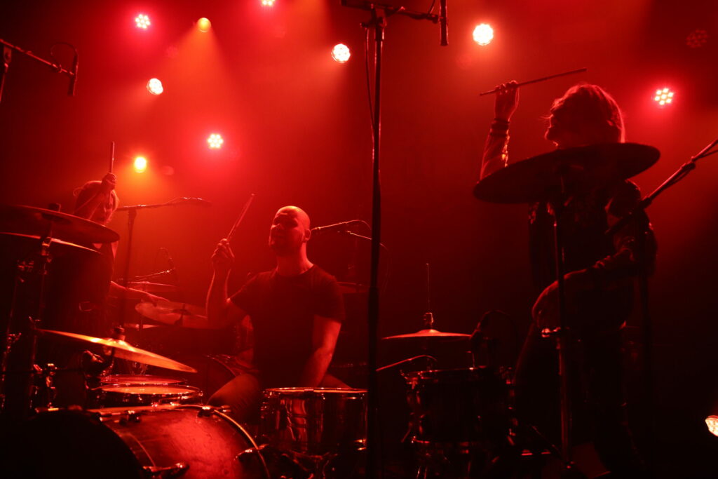 C’est un bordel certain sur scène qui nous accueille. Deux batteries sont entreposées là, celle de Monkey3 dans le fond et sur le devant de la scène celle frappée du logo de Birdstone. Les trois comparses se faufilent donc sur cet espace rendu plus exigu qu’à l’ordinaire et sans sommation entament leur set. La salle est déjà bien remplie, preuve s’il en était que Bridstone représente pour beaucoup une valeur sûre de la scène stoner. Pour les autres, ils découvrent que deux tiers de la formation consiste dans un réemploi des zikos de The Necromancers, soit la batterie et la guitare. On ne parlera néanmoins pas de sous formation de The Necromancers, l’atmosphère est bien différente et ce projet à une identité à part entière, celle d’un blues rock qui semble dire “pose ta gitane et ton whisky Johnny. On va écouter le blues”. Il en résulte un monde très visuel, convoquant certaines formations du genre des années 80/90. On ajoute à cela une ambiance sur scène toute particulière avec un Benjamin derrière ses fûts jamais avare de grimaces qu’un maquillage approprié renforce un peu plus, une Edwige qui incarne totalement ses lignes de basse et ne se laisse pas décontenancer lorsqu’elle glisse un pain bien involontaire dans le set qui ne fait que renforcer le sourire complice de Basile au chant et à la guitare. Le public valide généreusement le set qui se termine par un rituel quasi mystique des trois comparses frappant en chœur la batterie autour de laquelle il se sont réunis.