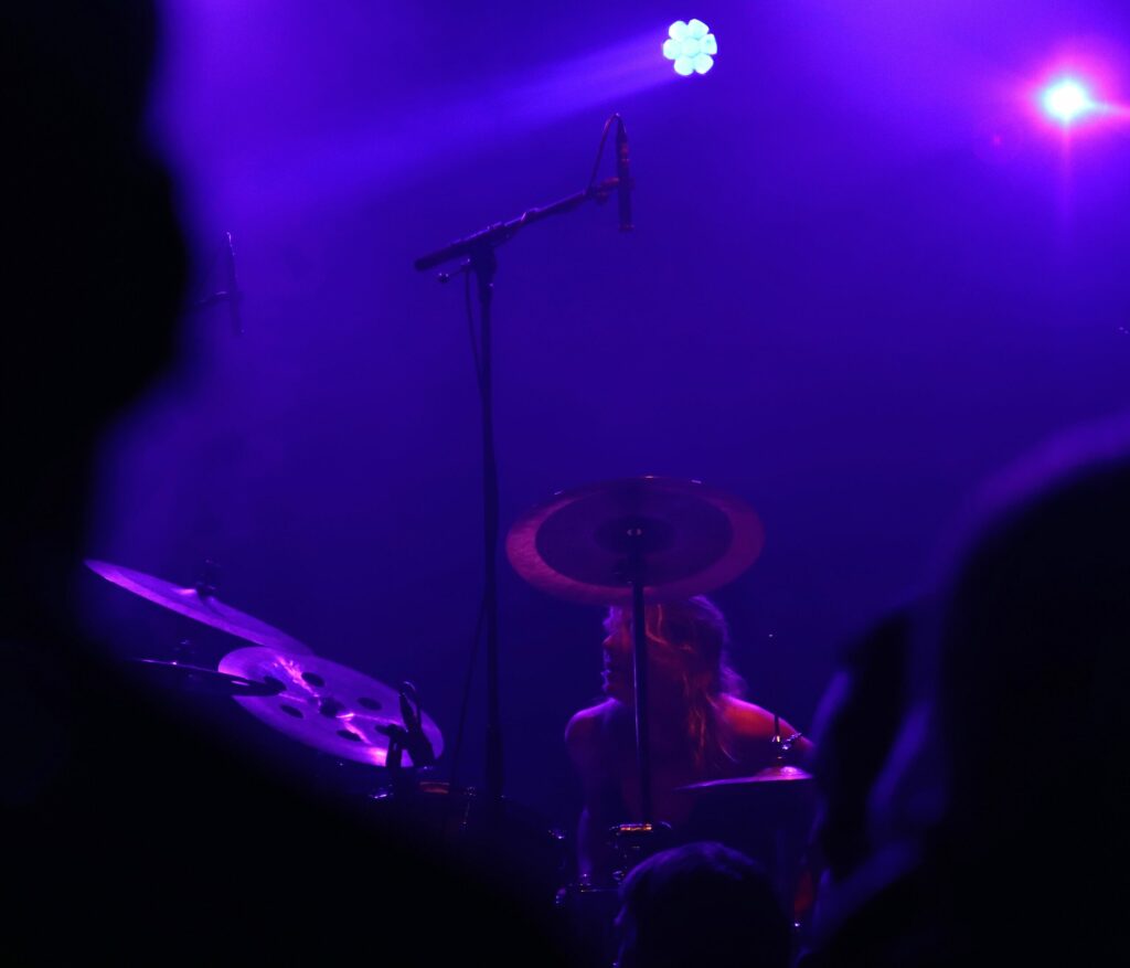 Après quelques rafraichissement de mise, il est temps d’aller voir ce que donne Powder For Pigeons, cela fait longtemps que je n’ai pas eu l’occasion de les voir sur scène et ma mémoire souvent défaillante me dit cette fois qu’il s’agit d’un groupe hautement appréciable. C’est à nouveau un encombrement de batterie sur scène, en effet, le Duo mi australien mi allemand joue sur ses propres fûts et Meike a fait migrer son instrument sur le côté droit de la scène d’où l’on pourra apprécier la férocité de sa frappe et l’étonnante décontraction de ses scandales, c’est dire si la dame maitrise les pédales. Ajoutons à cela une belle grosse amplification et c’est un mur rythmique qui se construit tout au long du set. De son côté Rhys sous ses de minet chanteur guitariste assène des riffs sans demi-mesure au frontières du rock indé et du grunge. Ce dernier ne se prive jamais de haranguer la foule présente avec un succès mitigé toutefois et ce à cause tant de son accent australien que du légendaire niveau d’anglais du public français. Ceci va d’ailleurs de pair avec l’adhésion du public à ce set peu formel. Le duo gagnant quelques deux tiers de la salle à sa cause et interpellant un dernier tiers qui ne sait pas trop quoi penser des enchaînements stylistiques peu orthodoxe de Powder for Pigeons. Néanmoins la foule reste assez compacte pour que ce set puisse être qualifié de réussite et finir de chauffer la salle pour Monkey3