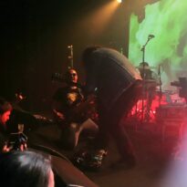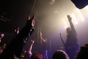 Je l’ai dit, les helvètes étaient attendus, on ne les avait pas vu dans l’ouest depuis leur set mémorable du Hellfest en 2022. C’est dans une habituelle nappe de fumée qu’apparaissent les quatre musiciens font leur apparition. Sans ambages, le groupe déroule son set toujours aussi millimétré lors duquel il délivre ses meilleures et désormais classiques compositions: « Jack », « Icarus » ou « Birth of Venus ». Le set light met en valeur les mélodies vaporeuses du groupe et les projections psychédéliques qui remplacent le back drop permettent à tous d’atteindre rapidement une mise sur orbite. Sur scène Boris en front man du groupe donne la réplique à un bassiste hautement vitaminé qui ne se prive pas d’appuyer ses rythmiques de gestes transcendés, allant jusqu’à jouer à genoux face à son camarade guitariste. Dans le public souvent on ferme les yeux, on tend le cou , le visage aux nues et il n’est pas rare de voir l’émotion affleurer au coin de l’œil de certains, rien que de très normal désormais pour se groupe qui communie avec son public tant sur scène qu’en dehors. A l’heure du rappel les gars se font désirer, jouant le suspens, Boris pointant du doigt d’un air désolé sa montre. ( Il faut toujours que les suisses nous rappellent leur supériorité en termes d’horlogerie, c’est dramatique…) Se décidant enfin à reprendre leurs instruments c’est sur les notes de Ennio Morricone que le groupe tire sa révérence avec un titre issu de « Il était une fois dans l’ouest », choix judicieux pour conclure le set le plus au Ponant de cette tournée.