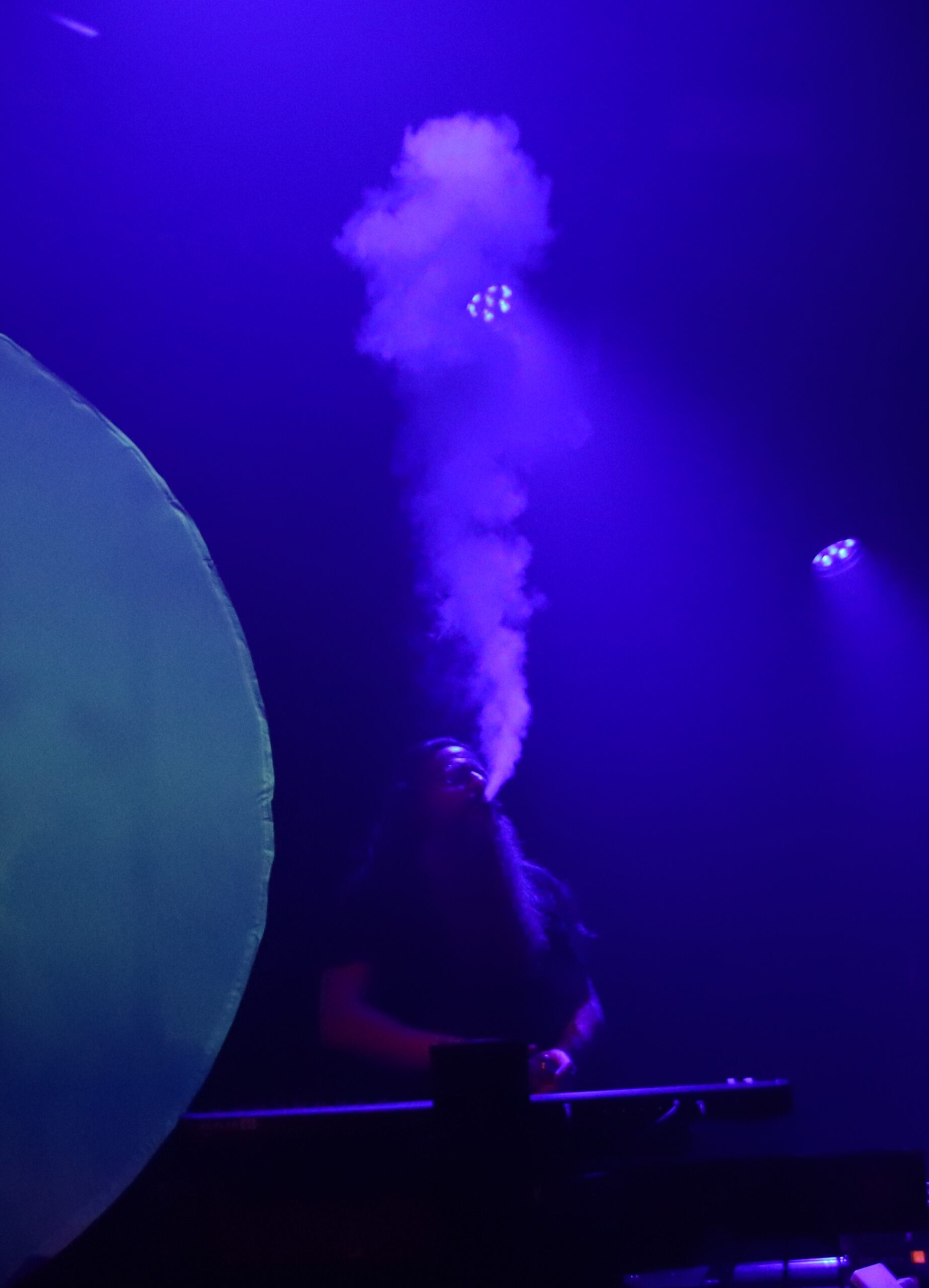 Monkey3 embarque le public dès les premières notes, ouvrant avec « Collapse », nourri aux riffs dignes de Pink Floyd. Bienvenue dans The Machine dernier album du groupe. On voyage quand même dans le temps jusqu’à « Jack » (Issu du second album de Monkey3), enveloppé par des rideaux de fumée produits autant par les fumigènes que par la cigarette électronique de dB derrière son clavier. Ce dernier a le chic pour parfumer le premier rang d’effluves sucrée, faisant de Monkey3 le seul groupe qui sent le biscuit!