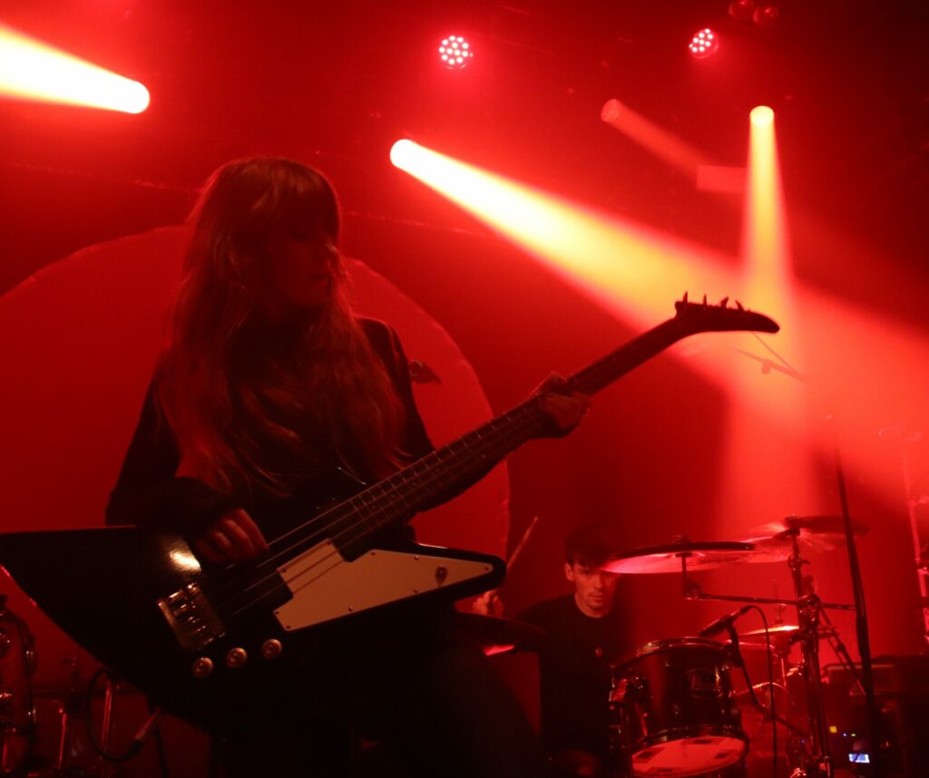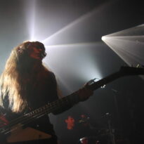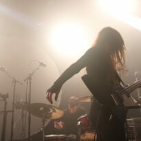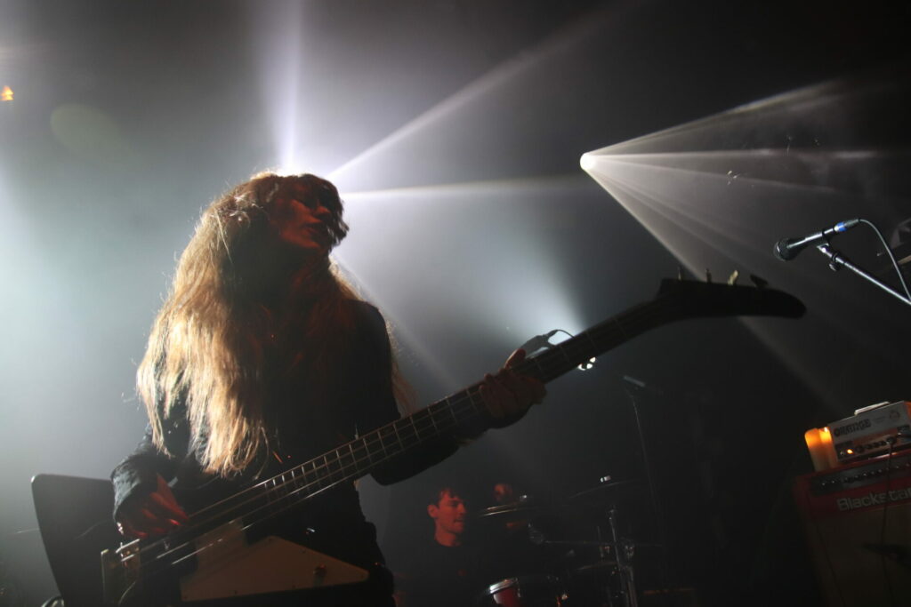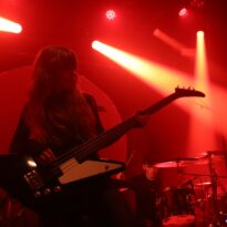 La scène est bien encombrée, les fûts des headliners étant déjà en place. Paul, le batteur de Witchorious, se retrouve coincé dans un angle derrière sa sœur, mais cela n’altèrera en rien sa frappe résolue. L’obscurité s’installe peu à peu, et l’ambiance mystique s’annonce avec une multitude de candélabres électriques disposés sur scène. Très vite, le groupe montre qu’il a bien progressé : nos souvenirs mitigés s’estompent, et on se laisse porter par la maîtrise scénique de ces jeunes doomsters.