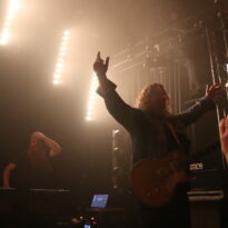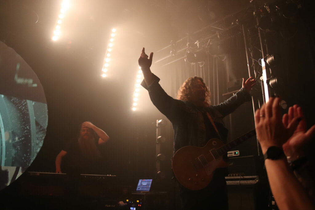 Lucie, derrière son thérémine, apporte à mi-set une touche de mystère, tandis qu’Antoine, au micro, ponctue son chant de gestes et de mimiques captivantes. Impossible de détourner le regard de lui et de sa guitare. Puis la lumière s’intensifie. Comment cette jeune formation a-t-elle atteint un tel niveau de qualité ? Antoine donne la réponse en annonçant qu’il s’agit ce soir du dernier concert d’une série de 30 cette année. Witchorious est allé à bonne école et a su capter la vibration d’un public qui en redemande, vibrant au son des morceaux avec enthousiasme.
