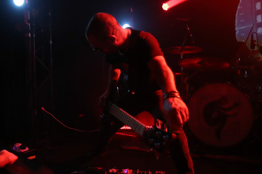 Petit à petit, la salle se réveille. Comment pourrait-il en être autrement face à des morceaux comme « Mass », « Icarus », « Kali Yuga », ou « Rackman », sublimés par les projections hypnotiques en arrière-plan, reprenant les motifs des clips du groupe et divers montages visuels.