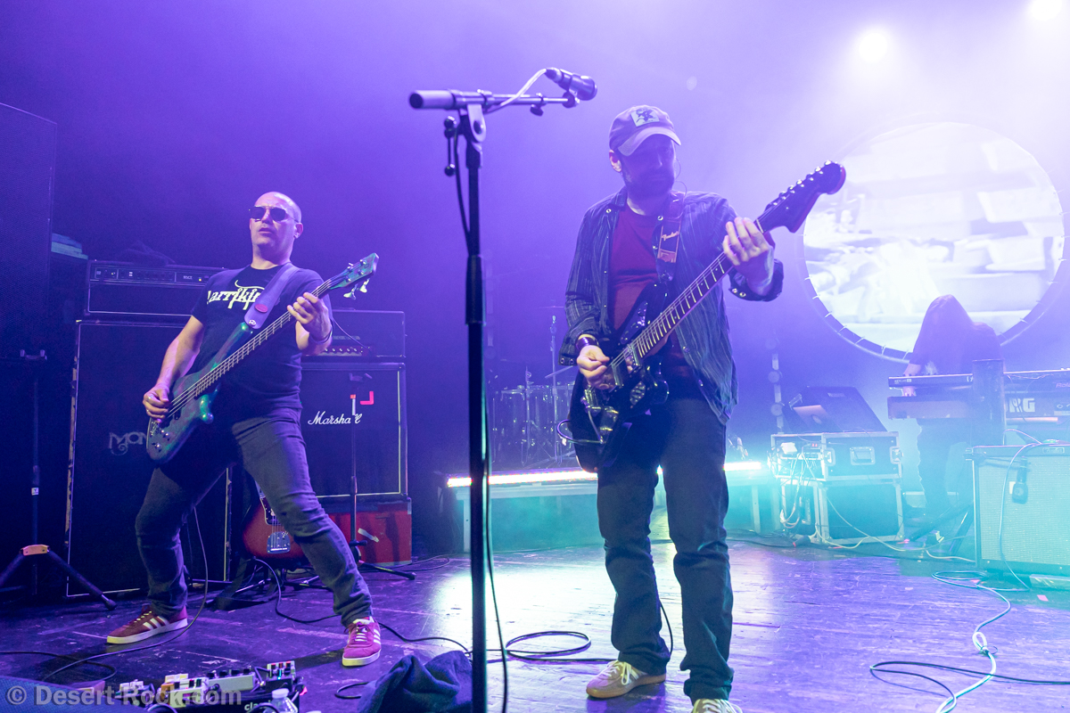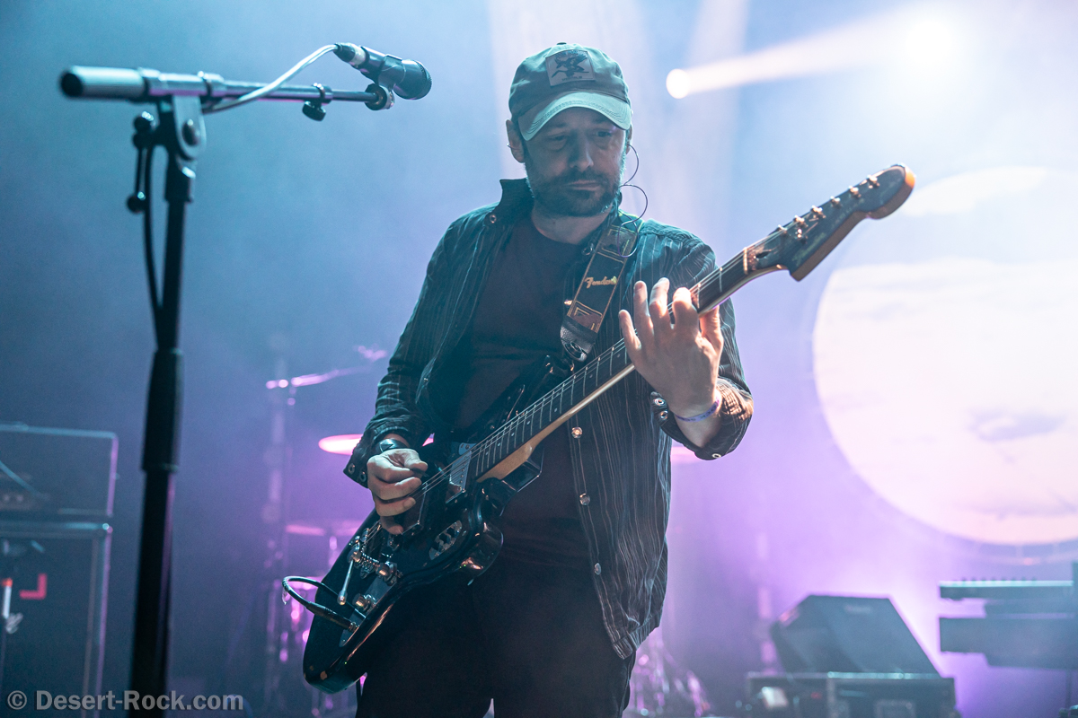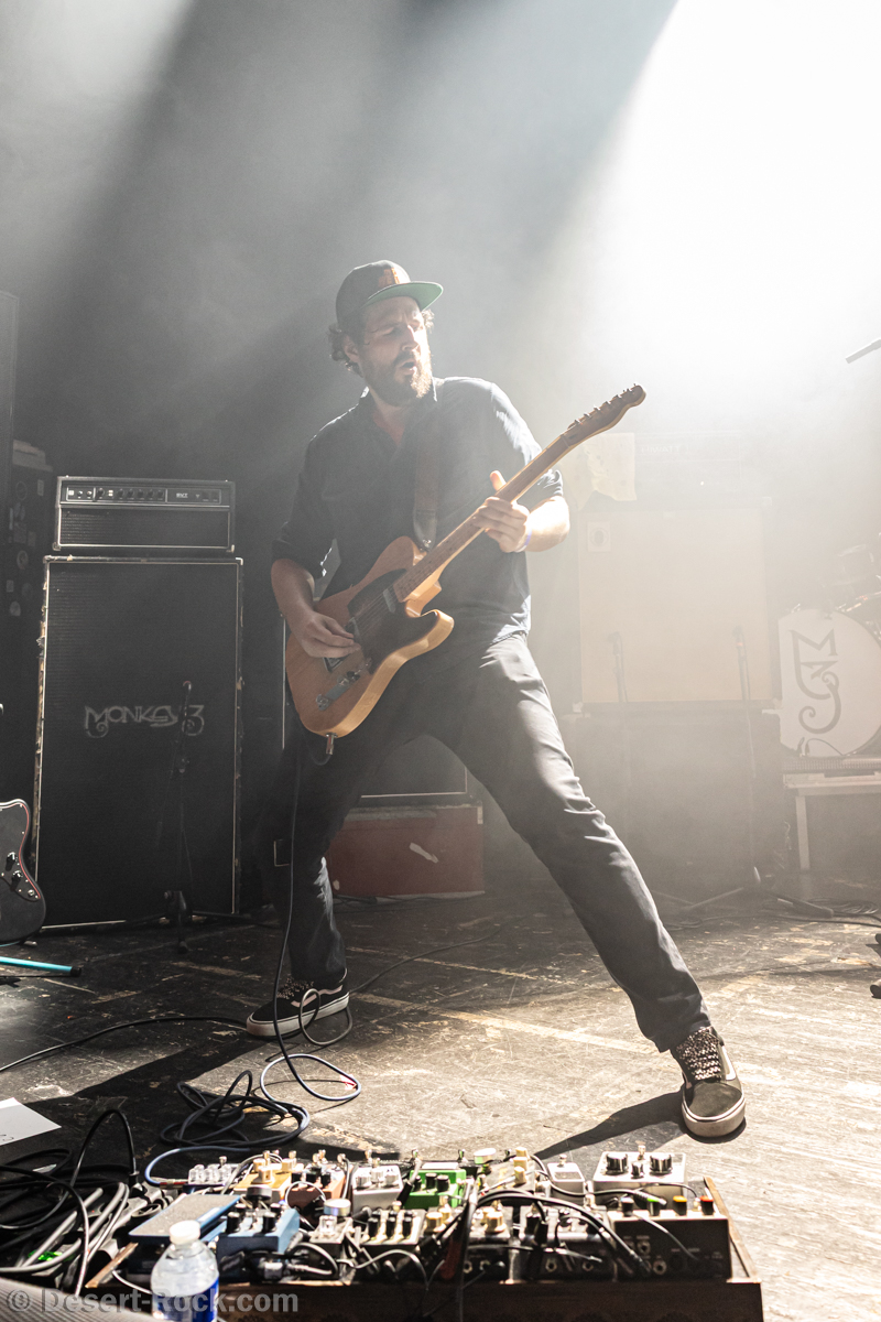L’interprétation impeccable du quatuor, en grande forme ce soir, est soutenue par un light show sobre mais travaillé et efficace, et une mise en son – comme souvent à Barbey – impeccable. La fête ne serait pas aussi belle sans le référentiel “Through the Desert” et ses atours orientaux, planants et enivrants. Le final de la chanson voit le trio de Mars Red Sky venir rejoindre discrètement Monkey3 sur scène, et prendre place dans la chanson pour une conclusion quasi-orgiaque : la séquence finale de la chanson, propice aux jams, voit donc les strates instrumentales se cumuler pour un titre rallongé de plusieurs minutes – dans les clins d’oeil et les sourires.