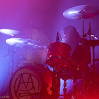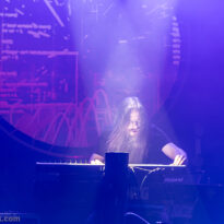 Cette fois, plus personne ne quitte la scène, et c’est donc la formation hybride au complet qui prend place sous nos yeux. Pas de surprise pour la set list : avec seulement deux titres en catalogue pour cette formation, il est assez évident qu’ils seront interprétés ce soir – et ce n’est pas pour nous déplaire. “Seasonal Pyres” est lancé sur orbite le premier, avec son intro lancinante et très progressive, permettant à chaque musicien d’entrer en piste progressivement. Au bout d’une poignée de minutes, la principale surprise est que tout ce monde sur scène ne génère jamais la moindre cacophonie ! Les compositions ont été écrites avec une telle intelligence, que chaque musicien, des deux formations, y trouve intelligemment sa place. C’est d’autant plus marquant pour la section rythmique, dédoublée pour l’occasion : les deux batteurs, s’ils alignent souvent leurs frappes pour un effet de densité inédit, jouent souvent différemment, de manière complémentaire. Il en va de même pour les deux bassistes, qui proposent des lignes mélodiques généralement différentes.
