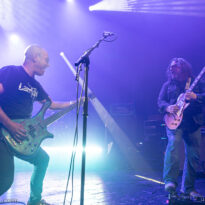 Le projet un peu fou qui a vu l’hybridation de Mars Red Sky et Monkey3 sur disque il y a quelques mois, se décline en live sous la forme d’un concert de chaque formation, et d’un passage commun. Ce soir, c’est le quatuor helvète qui entame les hostilités. La scène de Barbey est vaste et permet de loger confortablement les deux kits de batterie en fond, avec les claviers de dB entre les deux, et le reste de la scène pour les musiciens plus “mobiles” – en l’occurrence Jalil le bassiste à gauche, et Boris à droite. Les sourires sont au rendez-vous (côté public aussi) quand les nappes sonores d’intro du superbe “Collapse” commencent à faire monter la pression, avec les premières percées bluesy de Boris. Pendant les plus de dix minutes de ce titre protéiforme, le groupe révèle une large part de son registre, des plages les plus ambiantes et “spacy” jusqu’aux plans les plus épiques et majestueux, à grands renforts des leads sublimes de Boris. Conscient de la qualité de son superbe dernier album, Monkey3 engage d’affilée le superbe “Kali Yuga”, tout en puissance.
