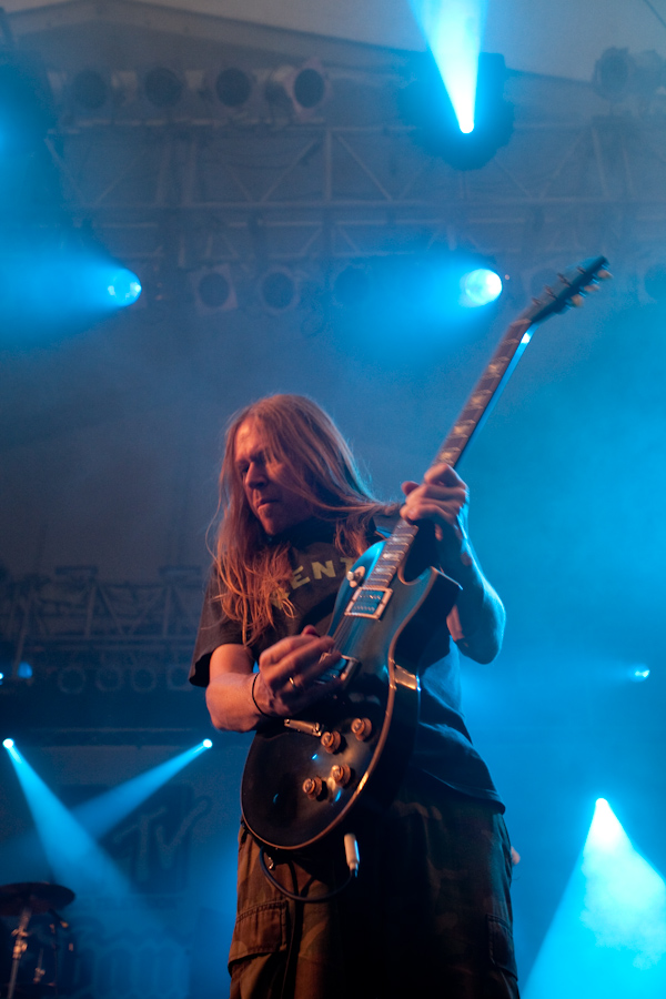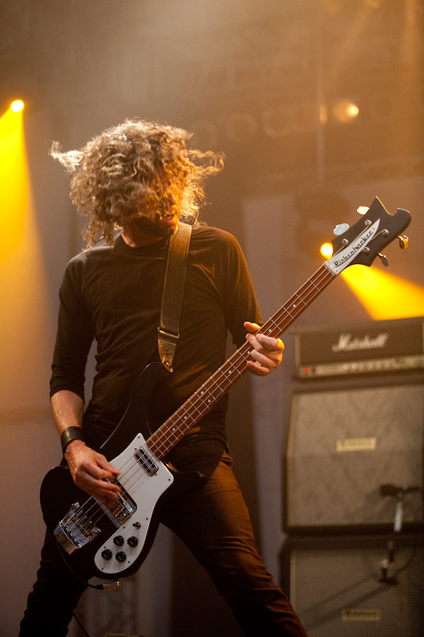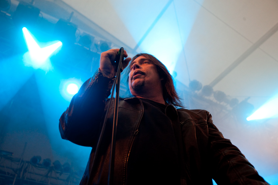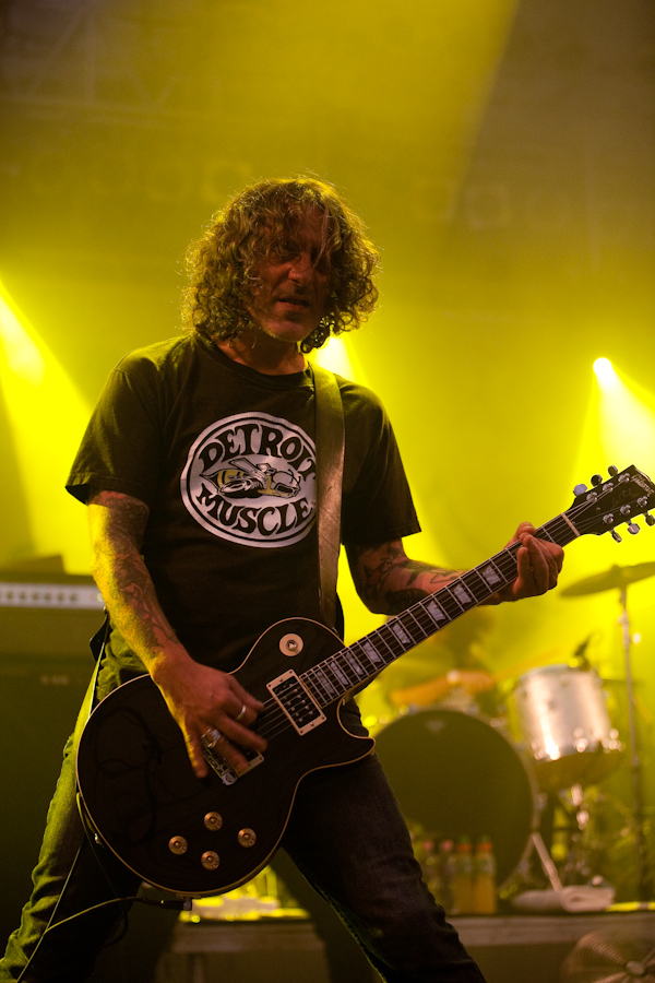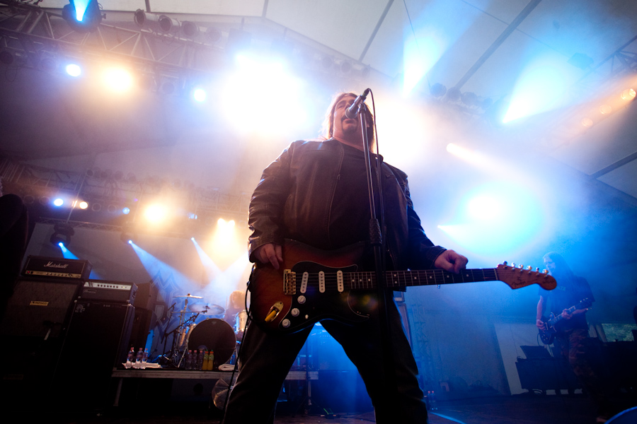 Le groupe de Dave Wyndorf foule les planches de la scène « metal » du festival devant plusieurs centaines de fans ou de curieux (normal, pour un festival musicalement si diversifié). De manières assez surprenante pour un public largement constitué de « newbies », Monster Magnet déterre le classique « Dopes To Infinity » en intro, et finalement, le résultat est là et l’ambiance est bien lancée. Le père Wyndorf a beau être toujours aussi bouffi (désolé pour cette remarque quelque peu « superficielle », mais en grand admirateur du groupe et de son leader, cette situation me chagrine un peu), le groupe se la donne comme au premier jour, à fond dans l’exécution des titres : Phil Caivano apporte la touche de « folie » aux guitares tandis que Ed Mundell délivre des soli infectieux de manière plus « posée », et le déjanté Jim Baglino est déchaîné avec sa basse.