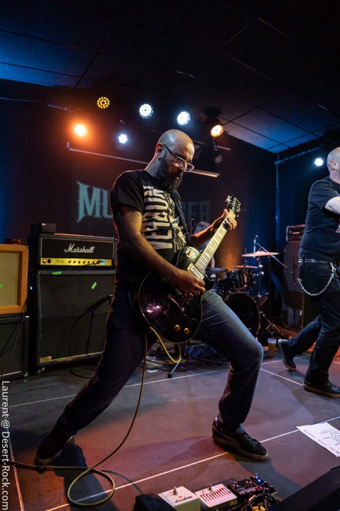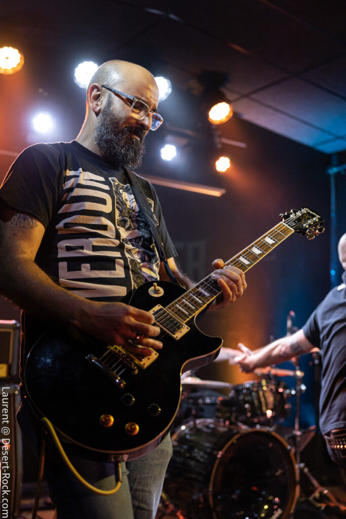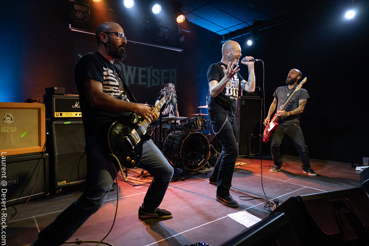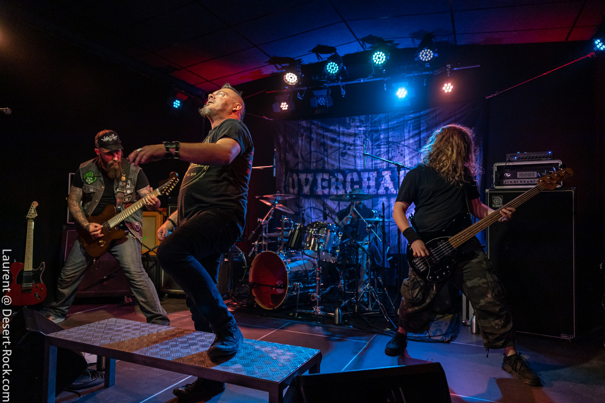 Les affaires commencent assez fort avec les locaux de Overcharger en guise de première partie. Le quatuor évolue dans une sorte de metal sludgy rocailleux assez nerveux (on cherche toujours les sonorités « stoner » que le programmateur mettait pourtant en avant sur l’affiche du jour…) qui semble convaincre le public (dont pas mal de potes à eux). Faut dire qu’ils ont l’argumentaire qui va bien : belle énergie, prestation scénique carrée, exécution remarquable (les musiciens touchent leur bille)… Une prestation très honorable, pour un groupe qui mériterait peut-être à trouver une voie musicale plus claire et affirmée.