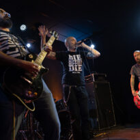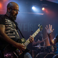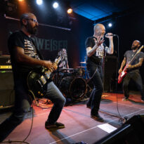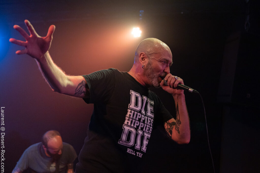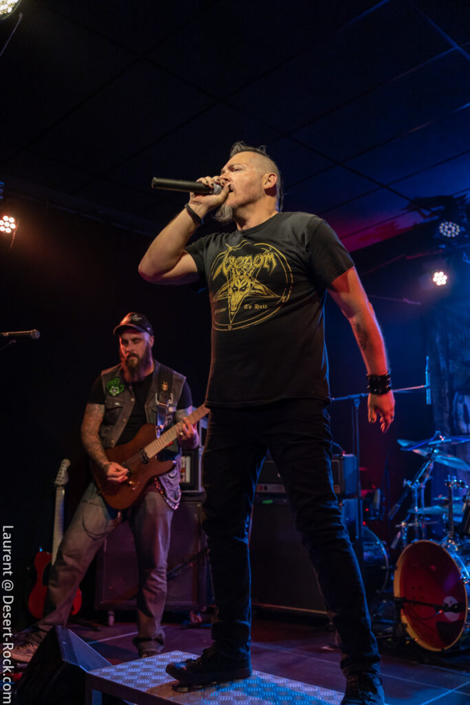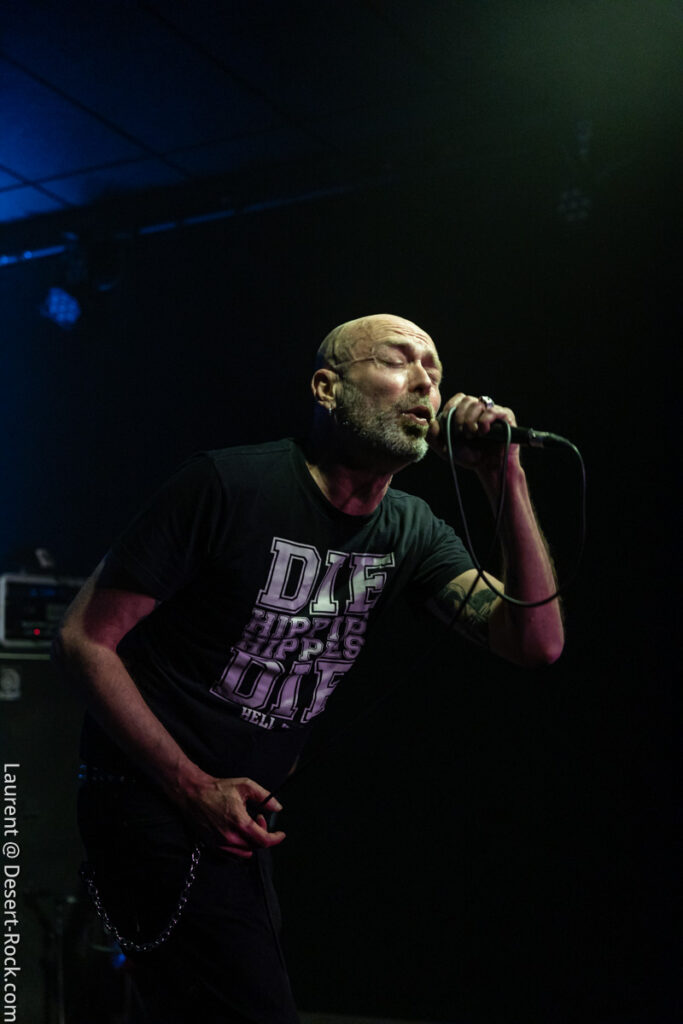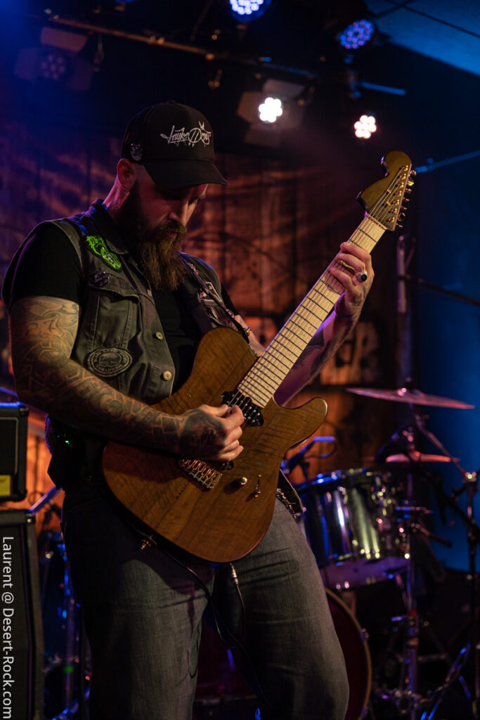 Les affaires commencent assez fort avec les locaux de Overcharger en guise de première partie. Le quatuor évolue dans une sorte de metal sludgy rocailleux assez nerveux (on cherche toujours les sonorités « stoner » que le programmateur mettait pourtant en avant sur l’affiche du jour…) qui semble convaincre le public (dont pas mal de potes à eux). Faut dire qu’ils ont l’argumentaire qui va bien : belle énergie, prestation scénique carrée, exécution remarquable (les musiciens touchent leur bille)… Une prestation très honorable, pour un groupe qui mériterait peut-être à trouver une voie musicale plus claire et affirmée.