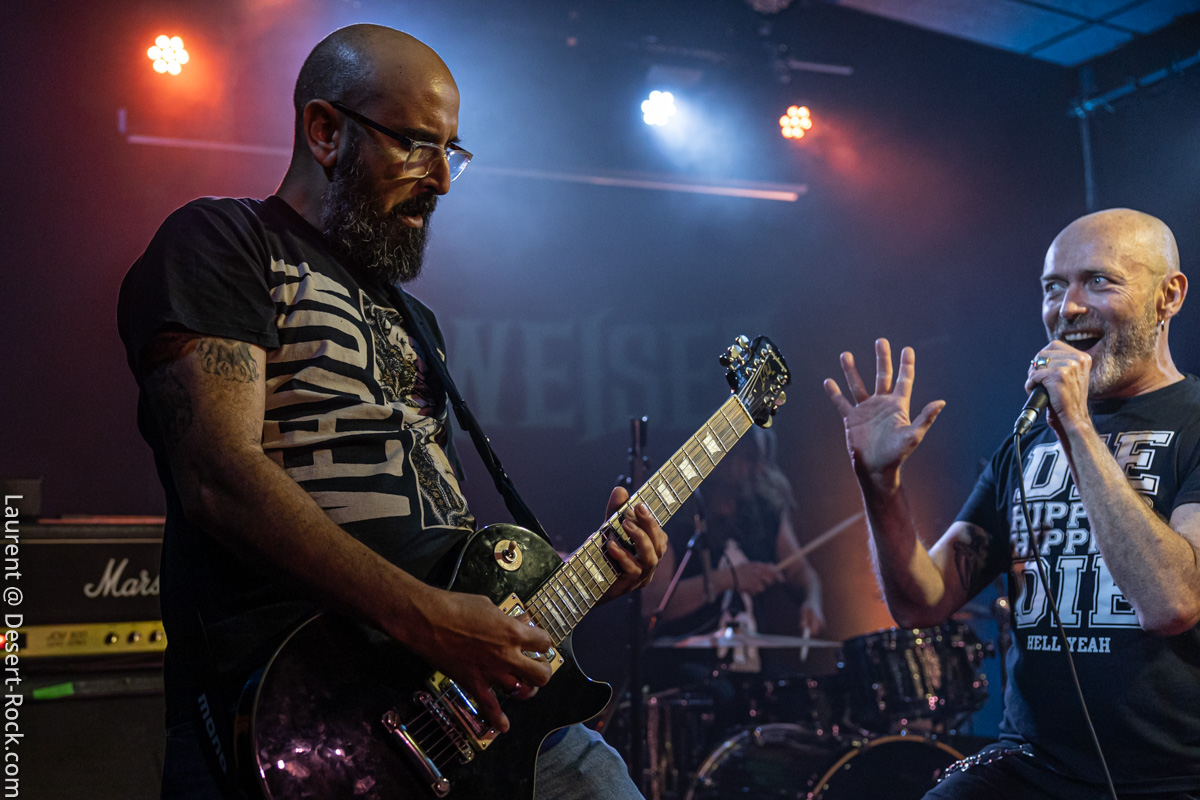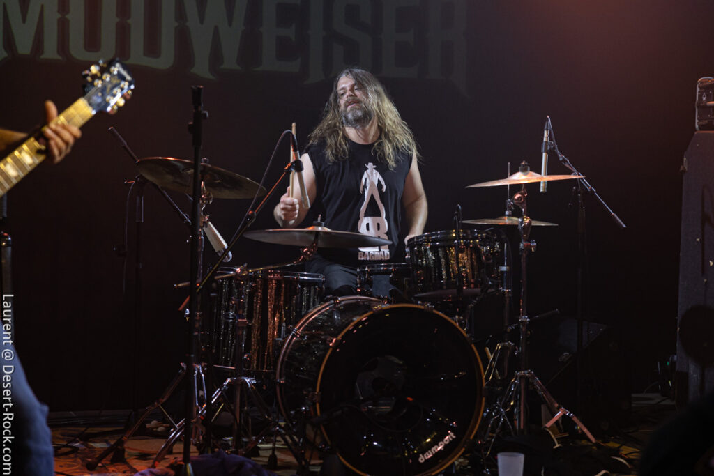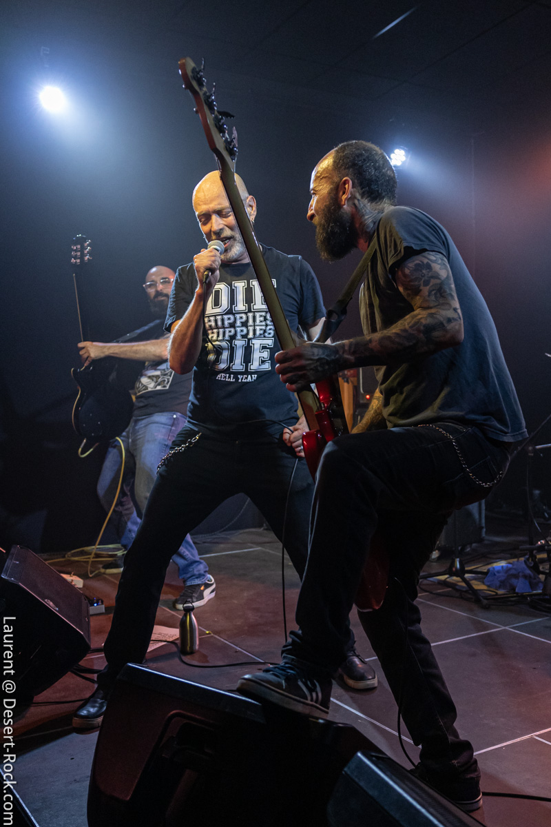Côté set list, petite déception : à une paire d’exceptions près, on se retrouve avec exactement la même set list que pour leur dernier set. Avec le choix du groupe de ne jouer que des titres de leur premier et dernier album, forcément la liste des choix est réduite. Par ailleurs, n’ayant pas l’opportunité de jouer des dizaines de dates par an, forcément le quatuor se retrouve sur une sélection de titres solides, maîtrisés, qui composent une bonne set list. Et on ne va pas cracher sur ces solides « My World », « High again », She’s Like Cocaine », et en particulier sur les bien gras « The Hunt » et « Blasted Forever ». En revanche, on est assez content de voir apparaître « Reckless Dream » pour une bonne torgnole live. Le milieu du set propose toujours cette fenêtre lente/mid-tempo composée de « Daughters » et « Sister Mary », salvatrice respiration avant une fin de set toute en rudesse. Et enfin, le final sur ce beau duo de pur stoner rock que sont « Bumper Hunter » et « Evil Woman » fonctionne à la perfection.