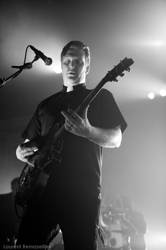 Le groupe quitte la scène une nouvelle fois. À Eindhoven, c’était pour ne plus revenir. Ici, il reste encore un final dantesque à exécuter. On commence avec un « Go with the Flow » d’une puissance phénoménale. Ensuite notre ami Josh demande de choisir entre « No One Knows » et « A Song for the Dead ». Devant les cris, le groupe jouera les deux. Certains pourront se dire que c’était prévu mais j’ai fortement l’impression que non. En effet, après avoir proposé les deux titres et entendu le public hurlait, Josh dit « A Song for the Dead ». Le bassiste comprenant que c’est le titre choisi entame les premières notes de basse. Mais là, Josh redemande pour « No One Knows » et face à un public déchaîné, nous annonce alors qu’ils feront les deux. Et quelles versions ! Le public se dit bien que cette fois-ci c’est la fin et profite de ces deux derniers titres pour extérioriser tout le plaisir ressenti durant ce show qui restera dans les annales. Le concert se termine et j’ai franchement l’impression d’avoir assisté à l’un des meilleurs concerts de QOTSA depuis très longtemps, mais surtout à l’un des meilleurs concerts de ma vie, et je suis certain de ne pas être le seul.