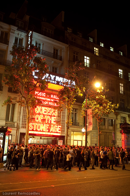 Pour leur tournée dédiée au premier album, les Queens of the Stone Age ont prévu deux dates en France, Paris et Strasbourg. Depuis le début de la tournée européenne de l’eau a coulé sous les ponts, Josh répète à qui veut l’entendre qu’il en a assez de jouer le premier album chaque soir. C’est donc avec une certaine appréhension que j’attends le concert du jour. Après un merveilleux show en début de tournée (Ancienne Belgique, chroniqué sur le site) et un show assez spécial en milieu de tournée (Eindhoven, le 14 mai) pour cause de public amorphe me voici devant l’Olympia pour mon troisième et dernier concert.
