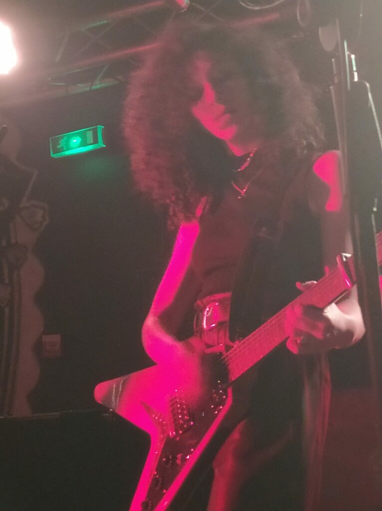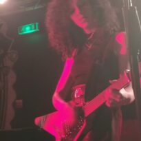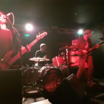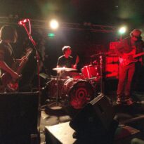 Il faut rapidement retirer les bouchons d’oreille car aux premiers rangs la saturation est intenable. Une fois le conduit auditif libéré on peut se rassurer, la balance est tout à fait correcte. Le trio de Parisiennes délivre une musique où sonnent quelques accents grunges. Il y a du Muse là-dedans aussi et si le groupe ne joue pas les copy cat c’est un constat au travers duquel on ne saurait passer. La musique de Grandma’s Ashes transpire et goute l’acidité, en cela on ressent une volonté punk d’en découdre et le jeu sait se faire violent à bon escient. Dans leur phrasé néanmoins on a parfois du mal à suivre la logique qui les anime, l’asymétrie des morceaux étant souvent perturbante. Lorsque le chant trouve les rails et que le chœur entamé tend à un moment de plaisir intense, souvent la gratte cherche à s’exprimer plus avant et prends des risques puis la rythmique prend un virage à 180° et la batterie rattrapée par la basse fait voler en éclat les morceaux.