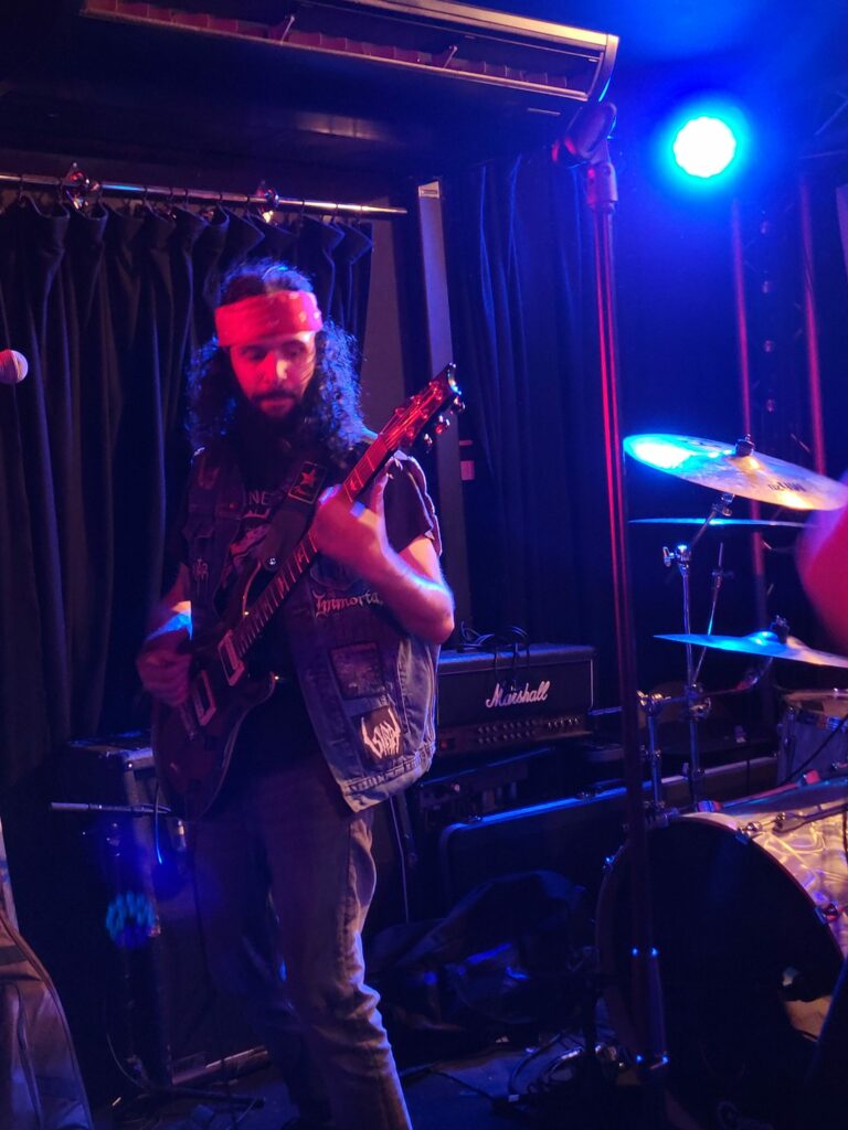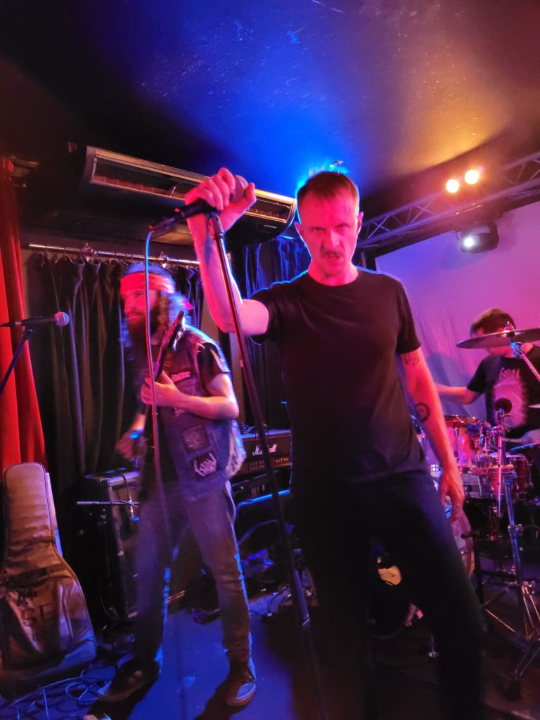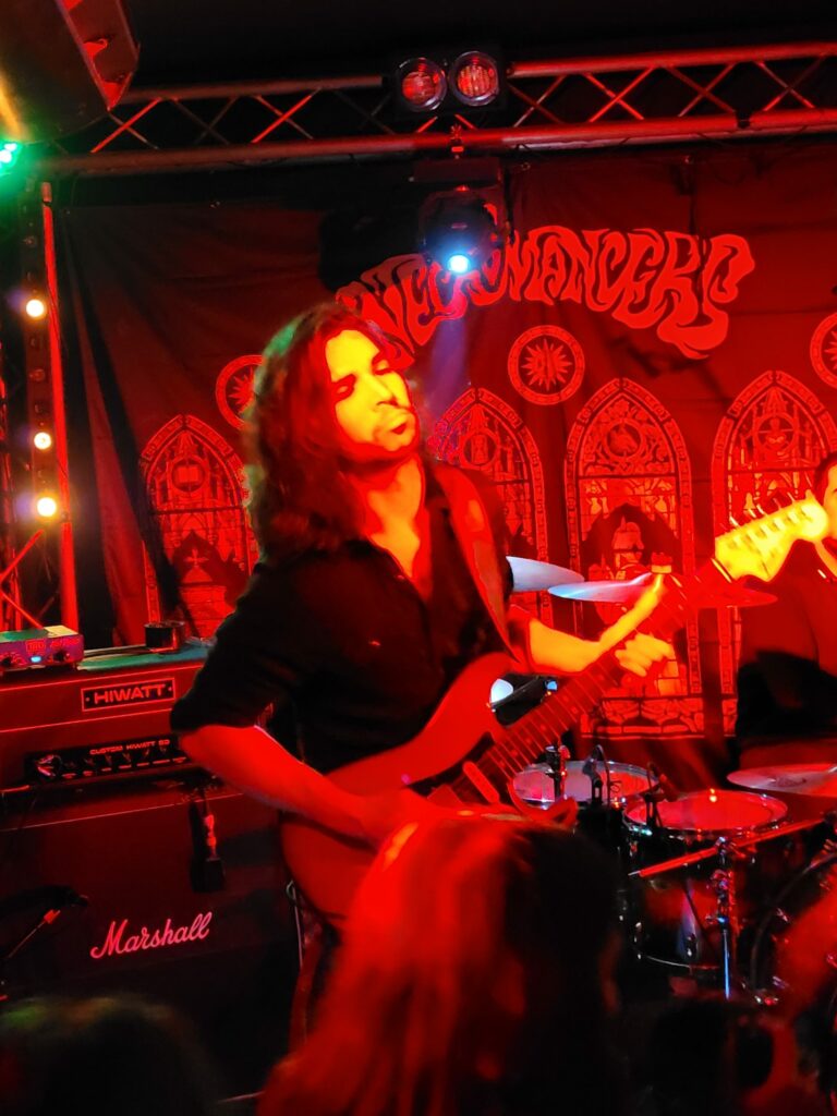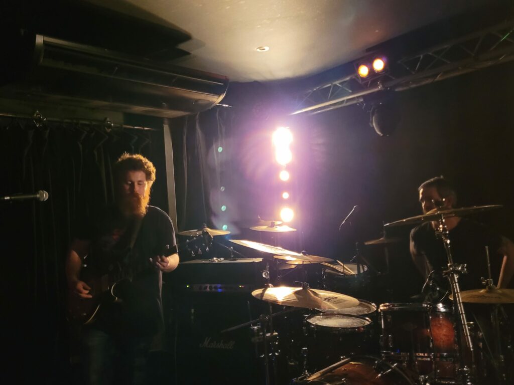 Arrivé en retard pour Birds of Nazca je ne profite que du fond de la salle et des dernières notes de ce duo qui envoie le bois en région Nantaise avec régularité et adoptant à chaque fois de nouveaux fidèles. Les nuques sont chaudes cela se voit mais sans doute pas assez pour prendre de plein fouet la locomotive Stonebirds. Leur sauvagerie tellurique est ce soir de la plus haute volée après une trop longue absence des salles de concerts. Ils laissent derrière eux les cendres de la scène dans laquelle Kabbalah va dessiner les arabesques envoûtantes de son doom occulte et aux vocales impressionnantes. Les comparses vont préparer agréablement le terrain à leurs successeurs, les classieux et quasi classiques Fire Down Below. Ces derniers électrisent le public qui a eu le temps de s’échauffer de tous points de vue. Les effets de l’alcool et du plaisir partagé de se retrouver dans la fosse trouvent une résonance plaisante dans le set électrique des Belges.