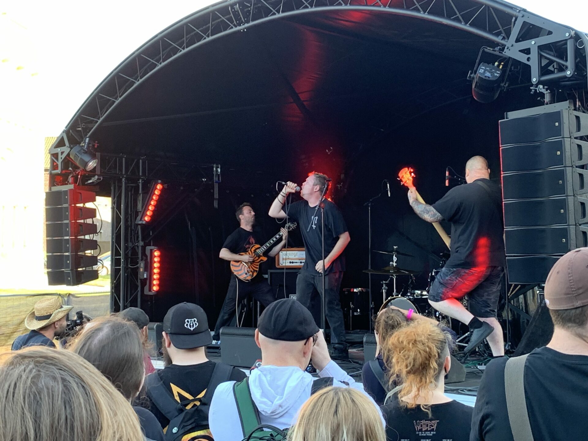 Moins à l’aise avec la musique plus punk de Yonic et Tunic (quelle puissance de la part de la chanteuse de Yonic cela dit), la première claque de ce Rock In Bourlon viendra avec les anglais de Desert Storm. Situé pile poil entre heavy metal et doom, Desert Storm masse les nuques de la fosse à la perfection et nous enfouit sous une avalanche de riffs brutaux allant même sur certains morceaux vers des sonorités et une lourdeur plus stoner rappelant Elephant Tree. Le chant primitif et l’énergie déployée par le groupe amène une ambiance heavy épique. Performance plutôt impressionnante car les anglais ne s’appuient pas sur une imagerie scénique marquante et ont plutôt opté pour un look de papa façon Lowrider.