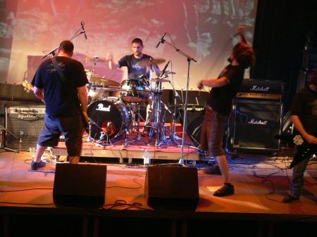 Pas évident. Je suppose qu’on aurait tous les 5 des réponses différentes, mais en ce qui me concerne, 2 choses me viennent à l’esprit. La première, c’était il y’a quelques années à Louvain-La-Neuve (Chez Zelle), où un mec ivre mort à passer tout notre concert, juste devant la scène, à hurler « IRON MAIDEN ! ». Et l’autre, qui est un de nos petits classiques, s’est passé au « Nandrin Rock Festival » en 2003 (avec ZZ Top en tête d’affiche). On jouait sous le chapiteau, il y avait beaucoup de monde pour notre concert, et notre ancien guitariste est tombé de la scène (or les scènes en festival sont généralement assez hautes). Mais les trucs les plus étranges se passe généralement après les concerts…