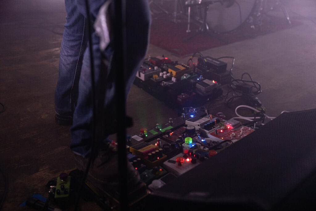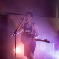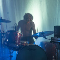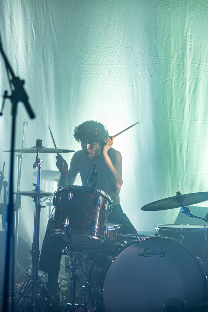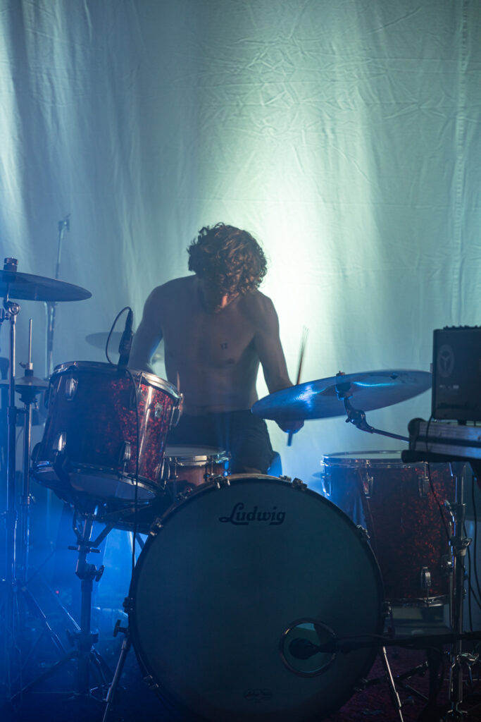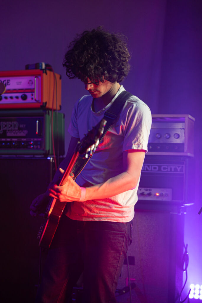 On rejoint donc ce haut lieu de la culture bordelais (une belle salle de concert, bien décorée, une cour extérieure pleine de structures fun et sculptures métalliques et autres…) dans une ambiance propice au chill absolu (coucher de soleil, DJ set crépusculaire, météo tee shirt / short, sourires…). On empoigne une blonde (une bière, esprits mal tournés !) et on rejoint la belle scène alors que Guadal Tejaz crache ses premiers décibels. On se laisse rapidement emporter par le groove des rennais, qui mêlent une énergie garage limite punk avec une base rythmique lancinante qui confère une tonalité psyche incontestable à l’ensemble. Scéniquement, on s’ennuie pas non plus, avec le guitariste et le bassiste s’échangeant occasionnellement leurs instruments, le batteur se calant derrière un pupitre pour lancer des séquences électroniques plutôt que frapper ses futs, et un frontman déjanté. Original et séduisant.
