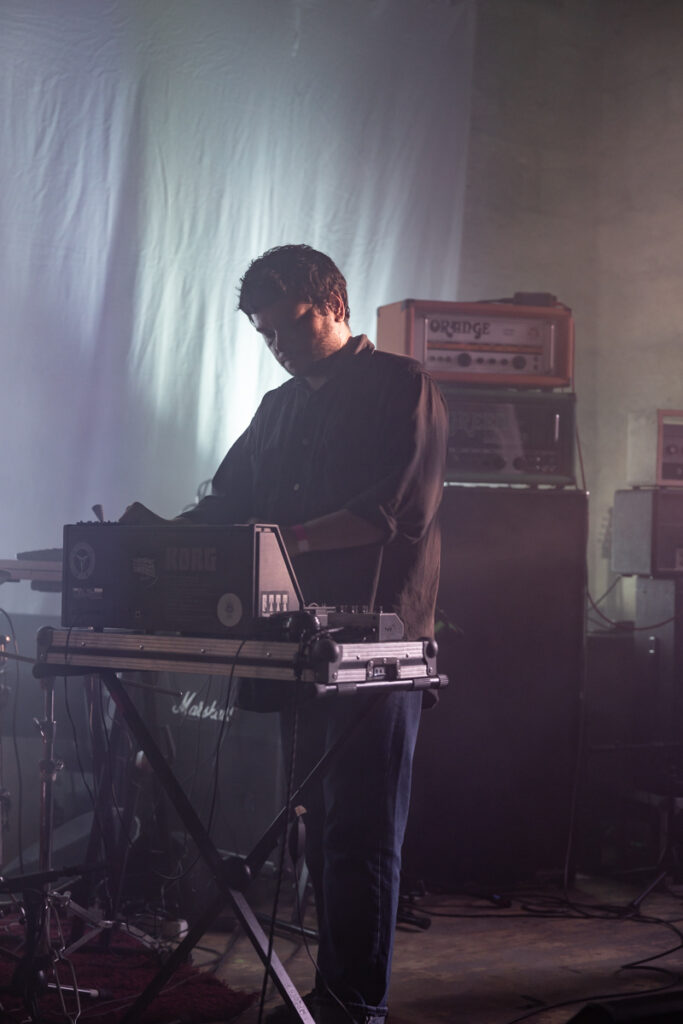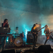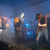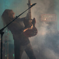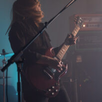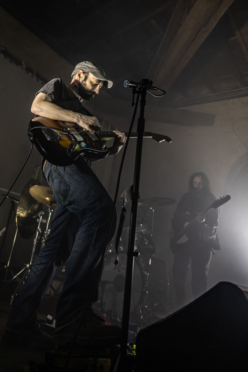 Même si l’on connaît un peu plus le quatuor nord-transalpin, la perspective de les revoir sur scène nous ravit tout autant. Il ne faut pas longtemps pour plonger tête baissée dans le piège de leur psych rock hypnotique et se laisser emporter par les plans hypnotiques développés par le groupe. Beaucoup de fumigènes, des lights discrets, et un ensemble musical soutenu par une base rythmique lancinante aux confins du kraut rock, ce sont les secrets des meilleurs passages de ce concert. Le groupe s’appuie sur des extraits de la plupart de ses disques (assez équitablement couvrant un large pan de sa discographie) et parvient assez souvent à nous emmener très loin, de véritables moments de grâce où le public, sourire aux lèvres, se laisse volontiers emporter… Quelques passages inégaux (quelques leads un peu dissonants, des fins de morceaux un peu brutales, des passages moins efficaces…) laissent miroiter une petite marge de progrès pour le groupe, mais ce set fut une pure réussite, et un nouveau signe que Giöbia est un groupe avec lequel il faut désormais compter dans la scène de pur psych rock.