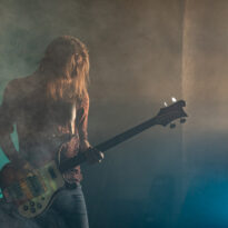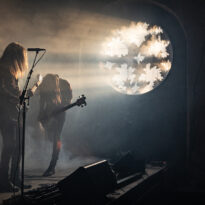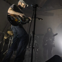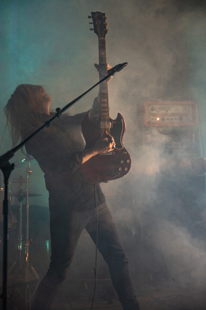 S’il est un groupe qui n’a pas chômé pendant la crise COVID et a tout fait pour continuer à défendre sur scène son dernier album, c’est bien le trio bordelais Mars Red Sky. Actif sur la plupart des scènes françaises et européennes depuis plusieurs mois, le groupe apparaît donc rodé et solide dès ses premiers accords. Le fait de jouer « à la maison » donne aux régionaux de l’étape (et au public) de grands sourires dès l’ouverture du set avec le classique « The Light Beyond ». Il faut dire qu’avec 4 albums désormais sous le bras, le groupe peut effectivement se targuer de sélectionner bon nombre de « classiques » (et se permettre même d’en zapper certains) pour composer ses set lists, ce qu’il ne manque pas de faire ce soir. Pour autant, le groupe a un dernier (bon) album à défendre, et le fait avec efficacité, en y consacrant presque la moitié de sa set list (mention spéciale aux très efficaces « Collector » ou « Crazy Hearth »). Pour autant c’est avec ses plus anciens titres que le trio cartonne le plus, avec en particulier un « Strong Reflection » absolument dévastateur, propice à un enthousiasme étonnant du côté du public (on y observera plusieurs slams). Pour autant, musicalement, tout passe crème, mené par des zicos sûrs de leur fait, en maîtrise : en sus de la base rythmique (et mélodique) colossale, rigoureuse et carrée, Julien délivre non seulement des leads inspirées mais aussi des lignes vocales sans la moindre fausseté. Le public, nombreux, ne s’y trompe pas et goutte chaque note de guitare avec ravissement, jusqu’au bout du set, qui se termine par un mérité torrent d’applaudissements.