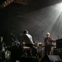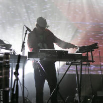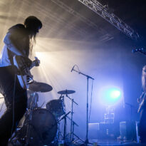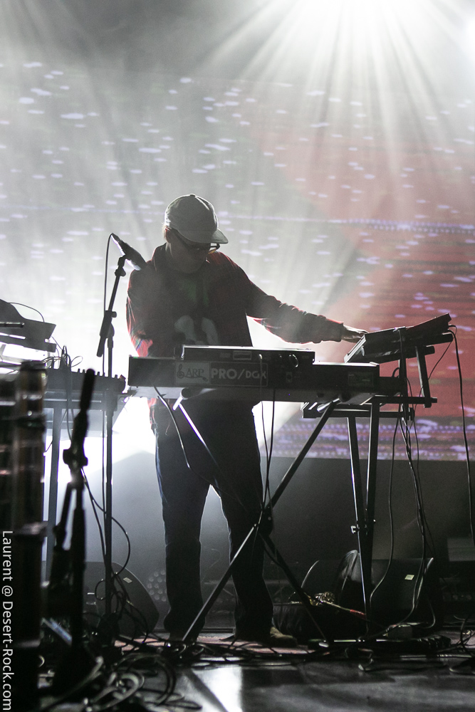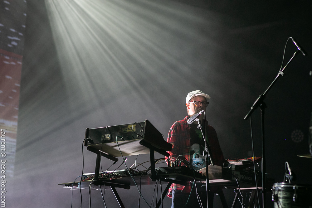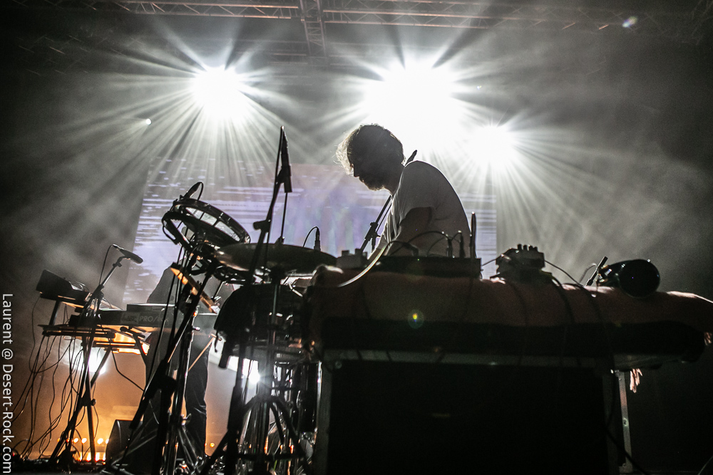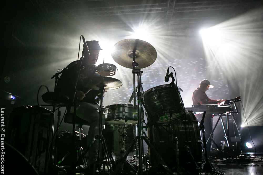 La soirée se termine dans une ambiance plus cool avec le trio de Zombie Zombie. Les français très portés sur l’aspect électro se répartissent un aréopage d’instruments plus ou moins atypiques (claviers, pédales d’effets, percus étranges, etc.) pour développer une ambiance électro psyche lancinante à fort pouvoir immersif. Le public n’est en revanche pas très dense dans la salle : beaucoup sont partis après Radio Moscow ou déambulent dans les allées de la salle, voire en terrasse dehors pour refaire le monde (ou débrieffer du concert précédent….). Du coup le set de Zombie Zombie fait parfaitement le job d’ambiancer les derniers belligérants, plus ou moins fatigués voire imbibés. Parfait pour la descente.