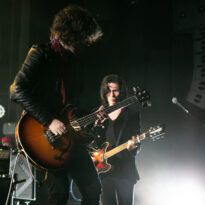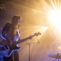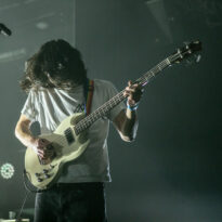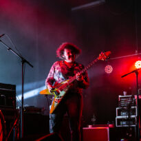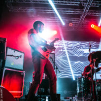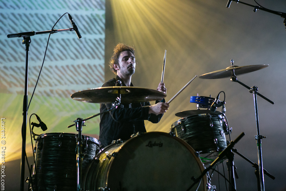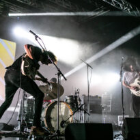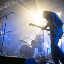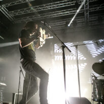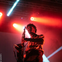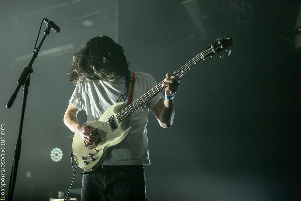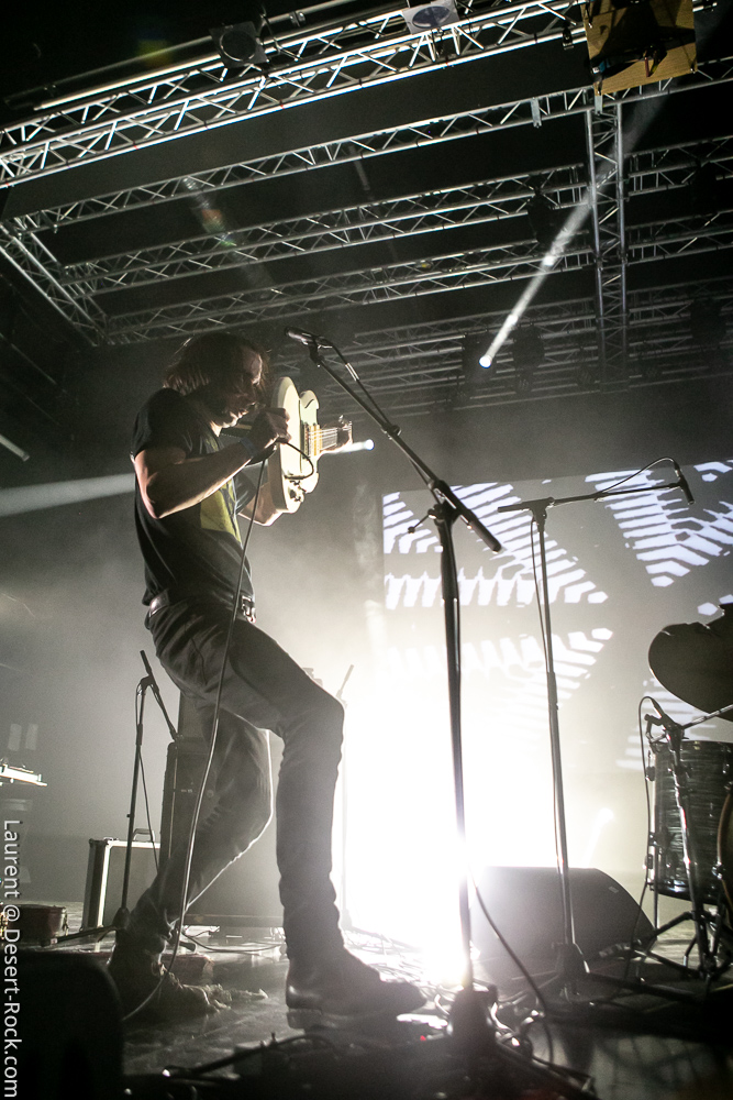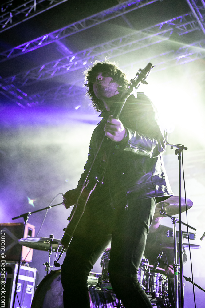 Après encore une courte pause (à peine le temps de vaquer entre tous les stands de merch et autres joyeusetés) les premiers accords de guitare des New Candys nous ramènent dans la sombre mais belle salle de concert de ce sympathique complexe du Grand Parc. On y retrouve 4 ténébreux Dandys, 4 bruns taciturnes, jeans slims, blousons en cuir. Manifestement en directe provenance de Manchest… Ah non, on me souffle à l’oreille que les gars sont vénitiens ! Pourtant leur musique penchant lourdement vers des penchants dark vaguement psyche nous enfonçait a priori plutôt en direction des lointaines et industrielles provinces grand-brittones, manifestement une influence prégnante dans tous les cas. Leur rock classieux, s’autorisant quelques jams vaguement space rock (ces leads chargées d’effets y sont pour beaucoup) semblent contenter une bonne part d’un public souriant et ondulant gaiement. Ça manque un peu d’énergie et de relief pour convaincre totalement, mais c’est solide et efficace.
