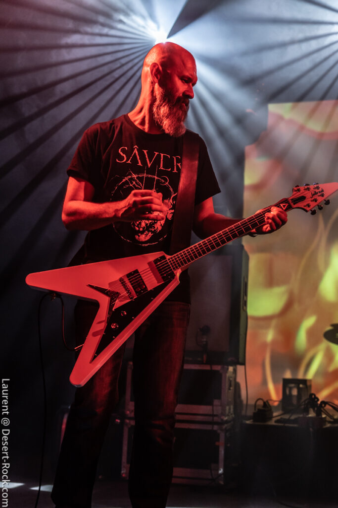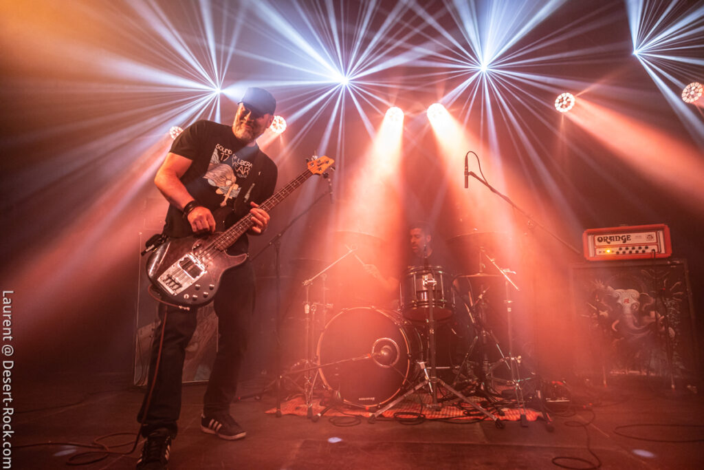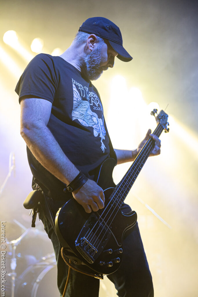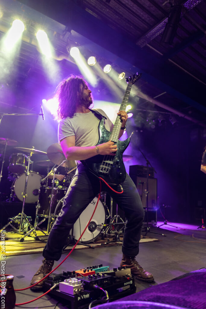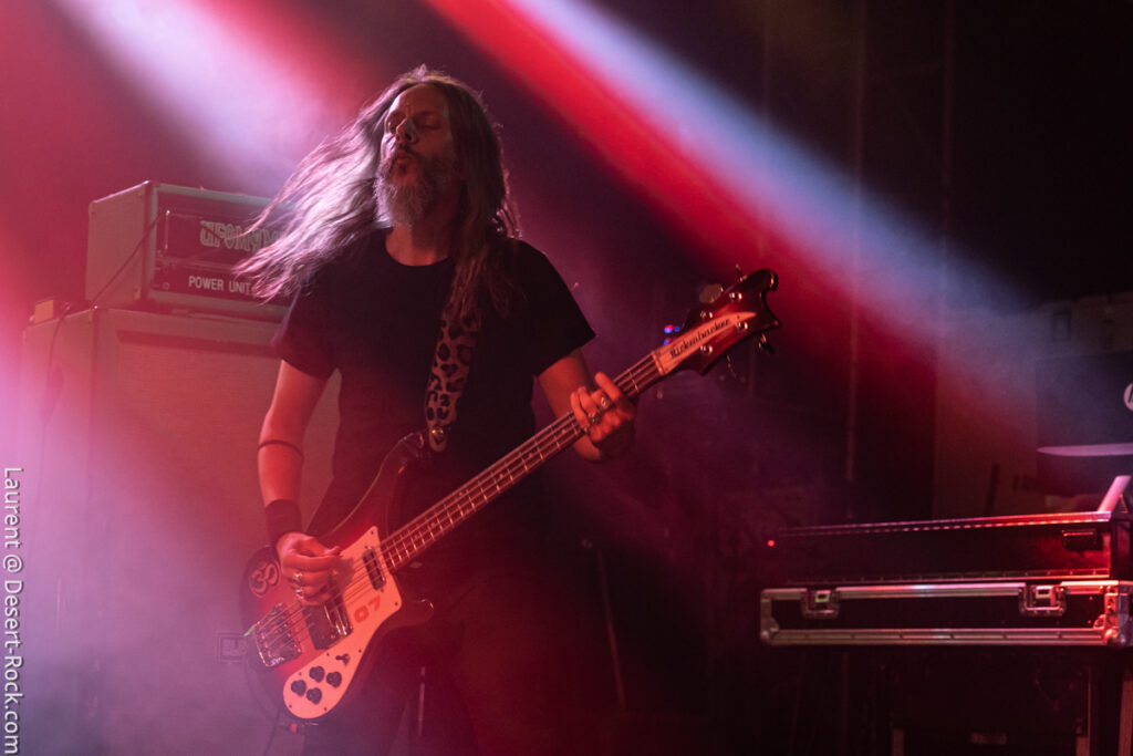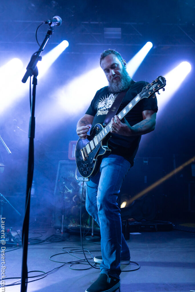 Parmi la foison de groupes actifs sur la fin de la première vague du stoner européen (fin des années 90 / début des annes 2000), The Great Escape n’est pas celui qui aura rencontré la plus grande notoriété. Sa discographie pourtant ne manquait pas d’intérêt, mais c’est en se transmutant sous la forme de My Sleeping Karma (avec la même section rythmique) que le groupe a commencé à gagner le succès que l’on connaît aujourd’hui. Le guitariste Uwe a récemment reconnecté avec ses vieux copains pour relancer le groupe, et, après quelques répétitions, les voici revenir aux affaires avec leur première apparition sur les planches – sous nos yeux, là, maintenant. Les sourires et les bonnes vibes sont largement présents, de même que le public, déjà assez dense dans la « petite » salle du festival, pour le lancement de cette journée de fête. Le groupe est bien en place malgré les années passées (plus de 15 ans après leur dernier album !), fluide et efficace. Malgré des albums proposant des choses plus variées, la set list du jour repose sur une assise franchement stoner en mode old school, ce qui ravit autant nos tympans que l’audience du jour. Une excellente entrée en matière.