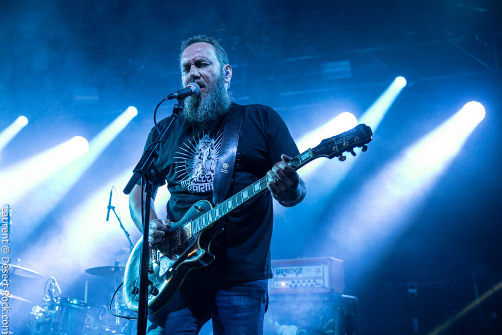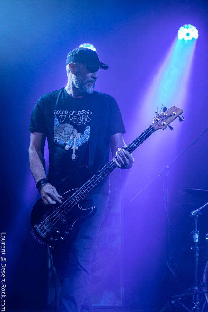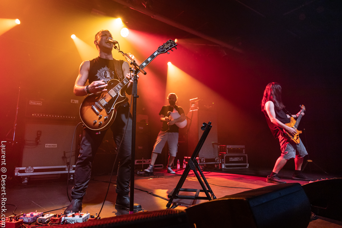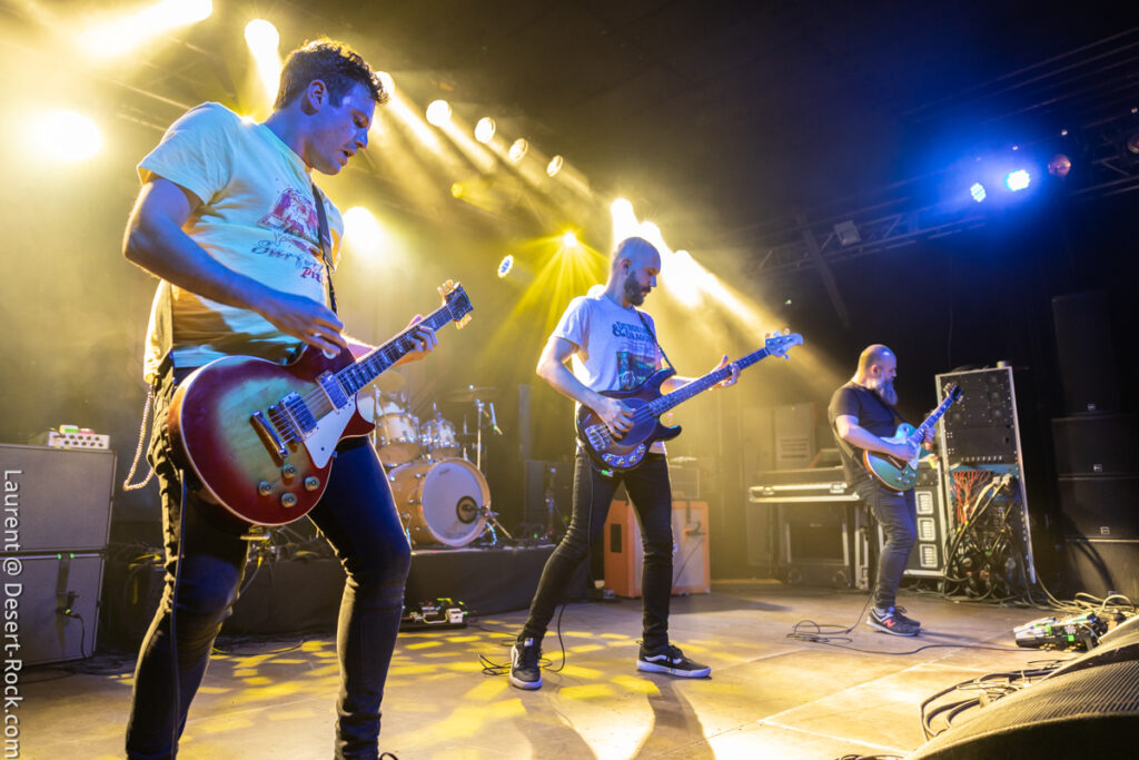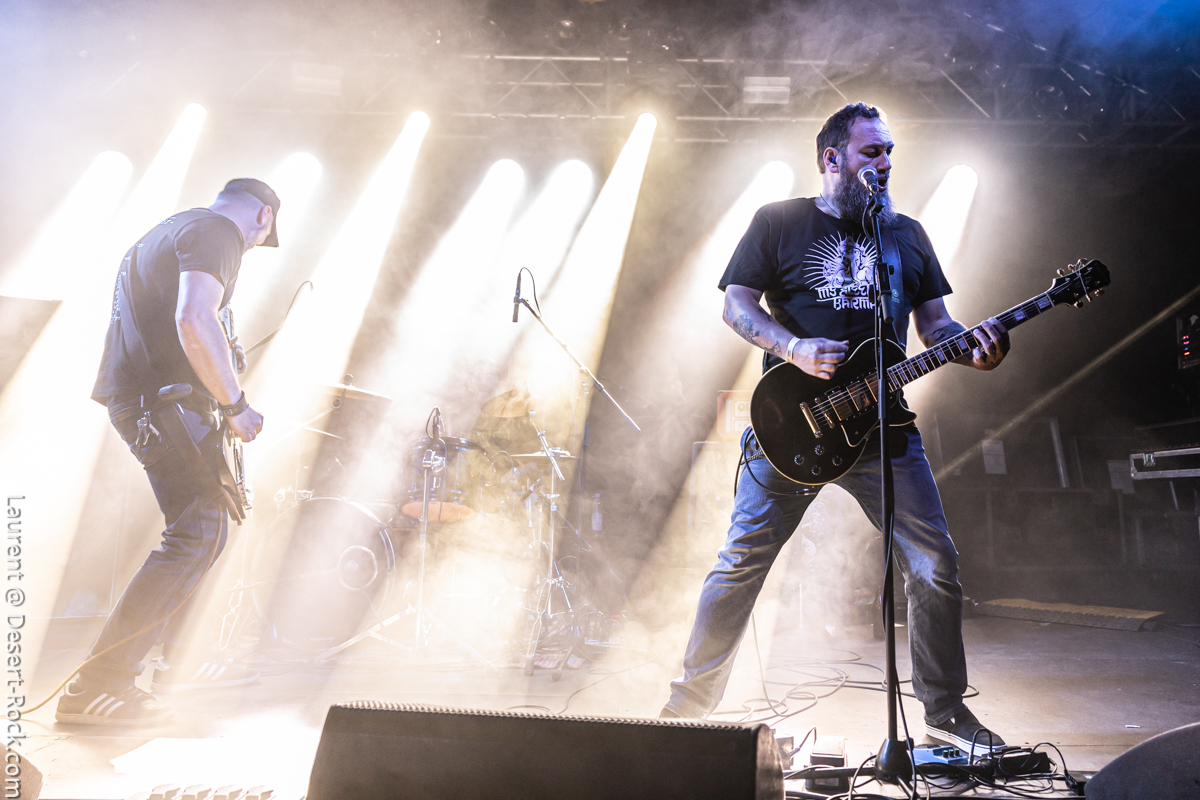 Parmi la foison de groupes actifs sur la fin de la première vague du stoner européen (fin des années 90 / début des annes 2000), The Great Escape n’est pas celui qui aura rencontré la plus grande notoriété. Sa discographie pourtant ne manquait pas d’intérêt, mais c’est en se transmutant sous la forme de My Sleeping Karma (avec la même section rythmique) que le groupe a commencé à gagner le succès que l’on connaît aujourd’hui. Le guitariste Uwe a récemment reconnecté avec ses vieux copains pour relancer le groupe, et, après quelques répétitions, les voici revenir aux affaires avec leur première apparition sur les planches – sous nos yeux, là, maintenant. Les sourires et les bonnes vibes sont largement présents, de même que le public, déjà assez dense dans la « petite » salle du festival, pour le lancement de cette journée de fête. Le groupe est bien en place malgré les années passées (plus de 15 ans après leur dernier album !), fluide et efficace. Malgré des albums proposant des choses plus variées, la set list du jour repose sur une assise franchement stoner en mode old school, ce qui ravit autant nos tympans que l’audience du jour. Une excellente entrée en matière.