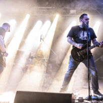 On n’est même pas à la moitié de la journée, et déjà le public est bouillant, manifestement plus qu’enthousiaste à la perspective d’assister au set des germano-américains. Tassé dans la fosse de la main stage, il répond présent dès les premières notes d’un somptueux « Compendium », valeur sûre dont l’interprétation est sans faille (évidemment, on n’en attendait pas moins) enchaîné au dévastateur « Dead Roots Steering »; à partir de là, et pour les 50 minutes suivantes, le public mangera dans la main du quatuor. Impeccable dans sa maîtrise instrumentale et scénique, le groupe apparaît solide et inspiré, et fait un carton plein sur sa set list, avec une poignée de classiques (cf. plus haut, mais aussi « Blind ») et en y injectant l’atmosphérique « Halcyon » issu de sa dernière galette. Le son de la main stage est plus que correct (le groupe a fait durer le soundcheck – ce phénomène fut d’ailleurs le fil rouge du week-end…), condition nécessaire pour apprécier la prestation du combo, qui apparaît énergique et à l’aise (belle perf au regard du style musical pratiqué). Une démonstration.