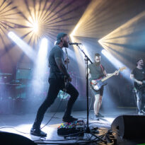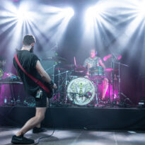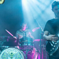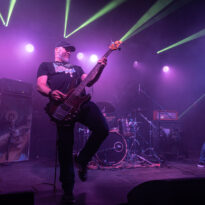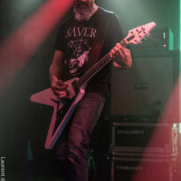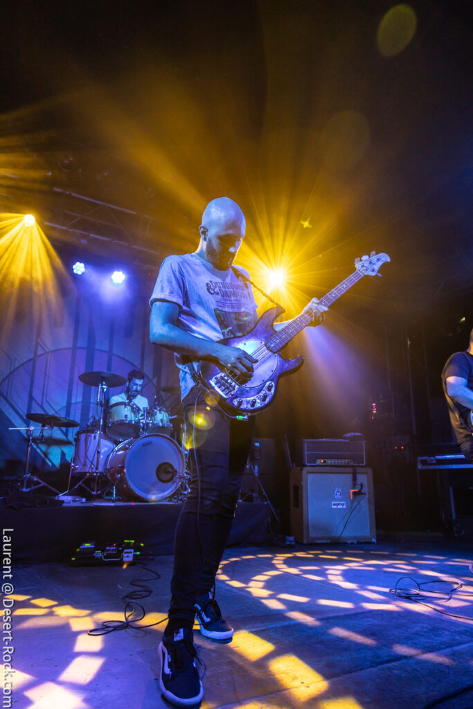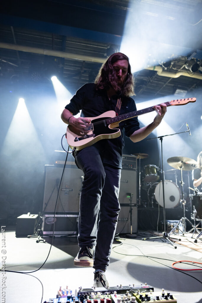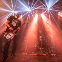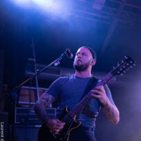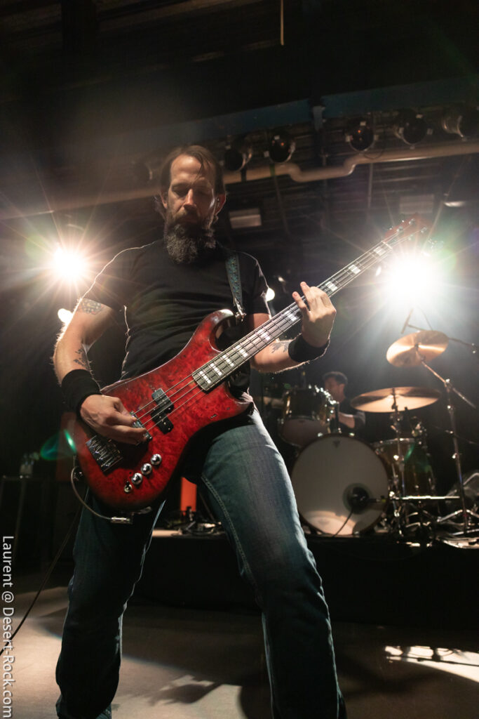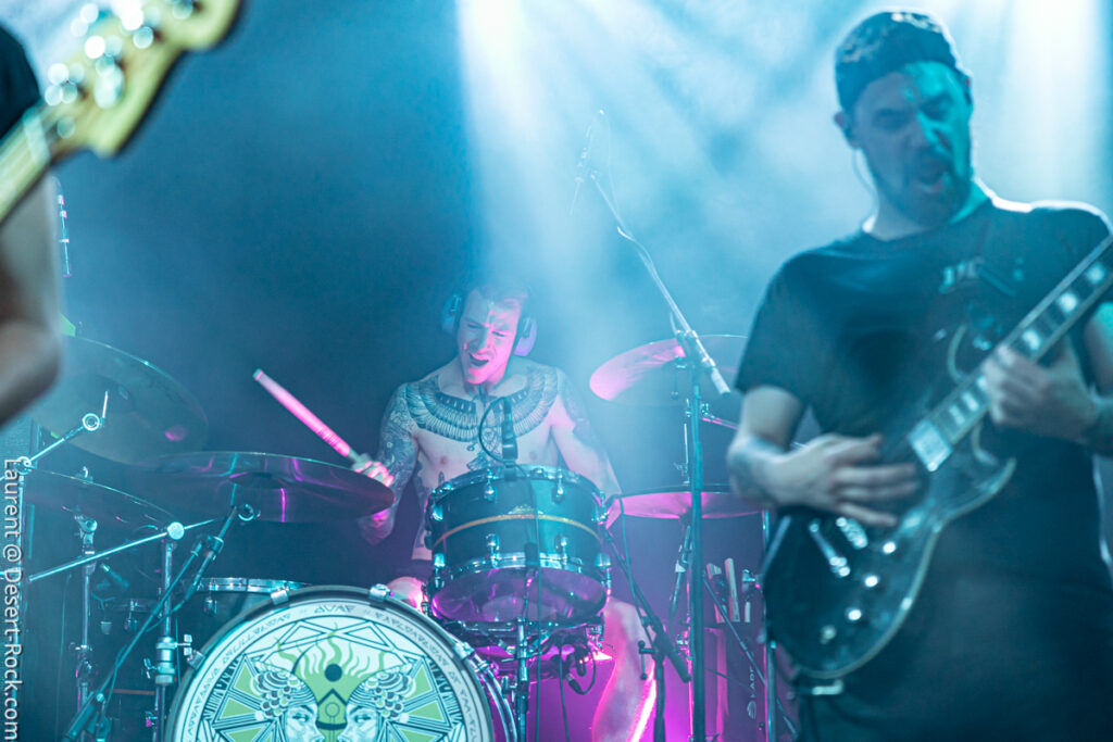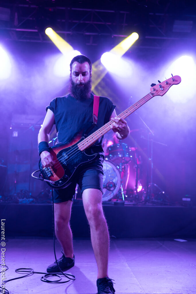 Après avoir reçu un groupe vintage, cette scène accueille des Britanniques qui ne se sont pas déplacés pour enfiler des perles. Après un démarrage bien à la bourre – le premier, mais pas le dernier du festival – Dvne calme tout le monde en attaquant dans leur registre couillu ! Ceux qui piaffaient d’impatience ont la banane : le set est impeccable. Ça bastonne à la guitare et au chant sur les deux flancs de la scène, épaulés par un bassiste charismatique, et dépourvu de micro (mais pas de pilosité), au centre, tandis que l’homme bidouillant les machines se cache dans la pénombre en fond de scène. On a carrément changé de registre et les lourds de l’assistance se délectent des vocaux hurlés sur fond de grattes distordues. Il faut pourtant reconnaître à la bande d’Édimbourg (avec un français dans le lot) un sacré talent quand ils abordent les parties moins rentre-dedans de leur set durant lesquelles le travail de l’homme au clavier se fait très présent alors que se déploient des vocaux plus éthérés. Un gros coup de cœur pour cette prestation aussi excellente qu’inattendue.