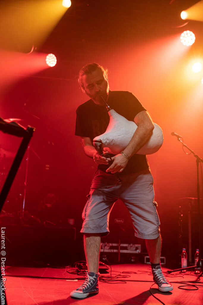 Revenons aux ambassadeurs d’Epire qui ont emmené un public honorable dans leur voyage cosmique et ethnique. Visuellement, leur prestation tient pour le moins la route et accompagne le spectateur dans le trip proposé par les Grecs, placés en arc-de-cercle sur le devant de la scène, avec leur batteur à gauche bien visible pour ceux qui suivaient au parterre. Les spectateurs en gradin bénéficient pour leur part d’une vue presque en mode hélicoptère qui apporte un plus pour certains mélomanes intéressés par des points de vue peu conventionnels. L’enchaînement de plans à la cornemuse, voire à la clarinette, s’avère au final plus qu’un élément de bête de foire puisque parfaitement inséré aux compos de ce combo ethnico-psychédélique qui nous en a mis plein les mirettes.