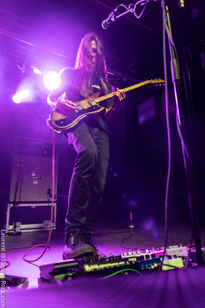 Les vétérans madrilènes ont la lourde tâche de succéder à – et d’interférer un peu avec le set de – Elder en ayant le potentiel de toucher un public presque similaire. Actifs depuis 15 piges, ces vieux briscards prennent leur tâche avec le sérieux et la sérénité qu’apportent les années en débutant par un « Cobra » de grande classe dans l’esprit des premières compositions concises de Monkey3. Les Ibères sont rudes à Munich et ils enchaînent leurs brûlots les uns après les autres, n’interagissant avec le public qu’avec leur musique et leurs quelques cris sans micro (allant à l’essentiel, ils ne se sont même pas donné la peine d’installer un pied de micro). L’avantage pour les rares photographes dans la place sera d’avoir un champ totalement dégagé quand ils entameront des pas de danse en face-à-face à la manière de My Sleeping Karma. Le show cosmique et sacrément bandant des Espagnols verra s’enquiller principalement des titres de leurs albums III et Vortex durant les 50 minutes de jeu qui leurs étaient accordées.